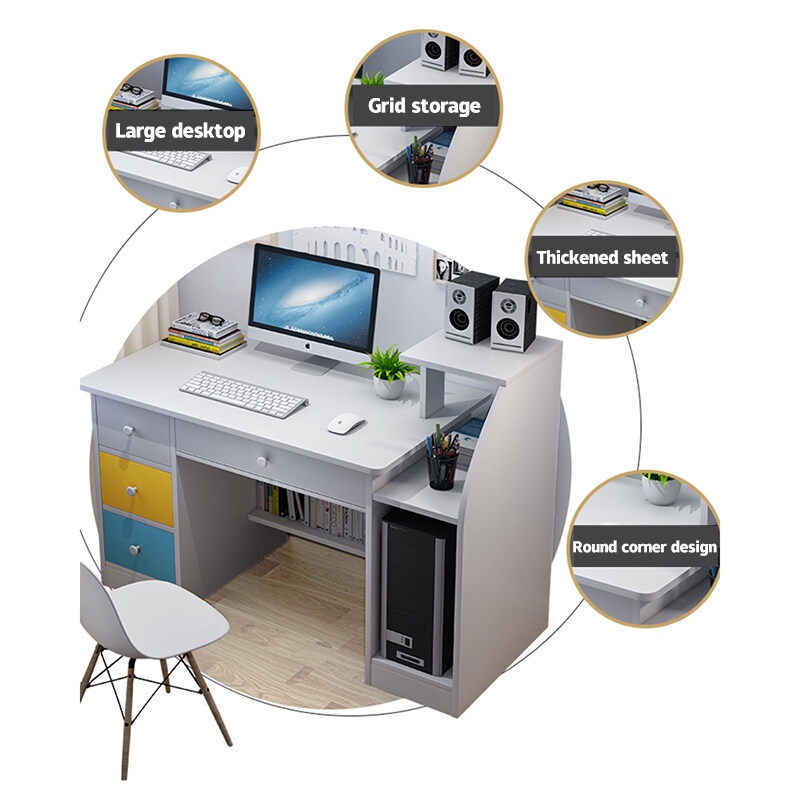 Blue desk computer desk table with drawers with shelves under the desk, versatile, sturdy