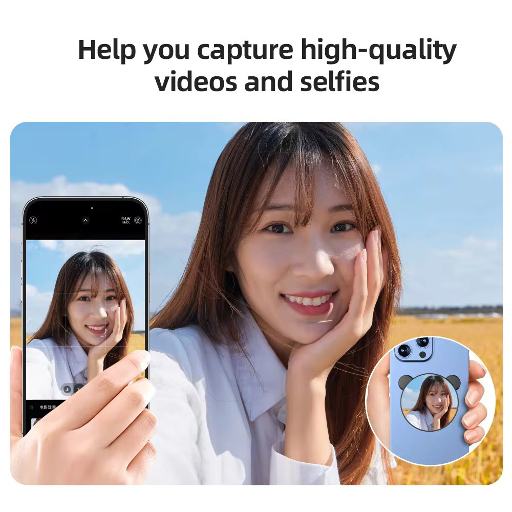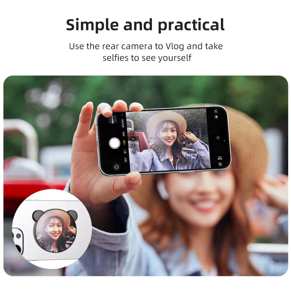 BlueWow Universal Magnetic Selfie Mirror for Phone Rear Camera, Video Selfie Vlog for IP 16/15/14/13/12 Android Smartphone Selfie Tool