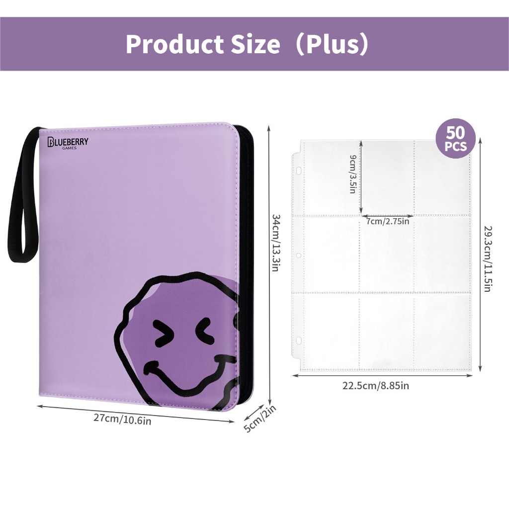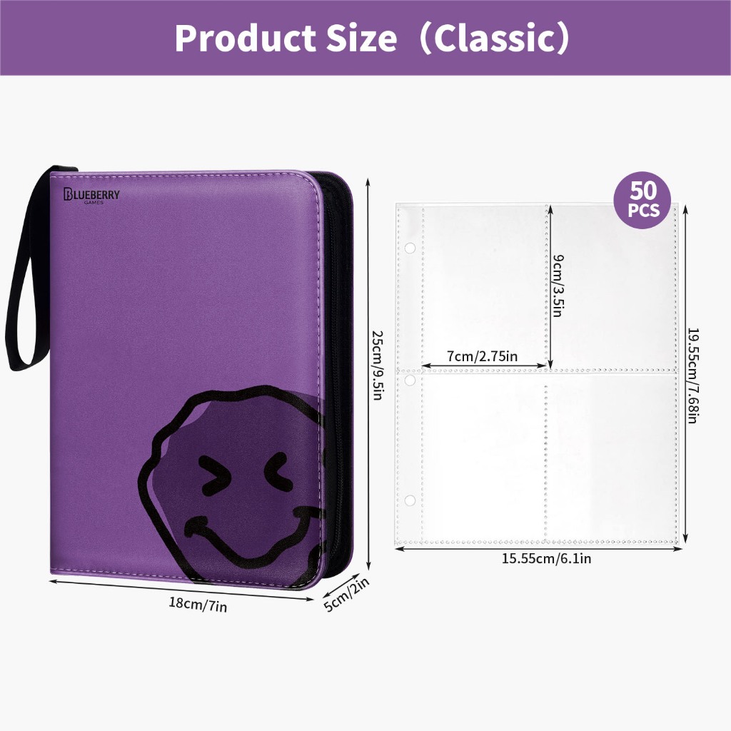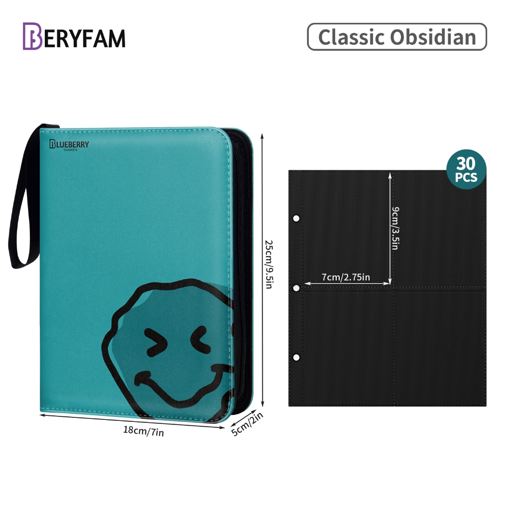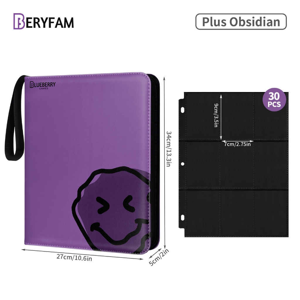 BERYFAM Binder Zipper Album 400/900Pocket Pokemon Leather LomoCard Binder Photocard Blueberry Series