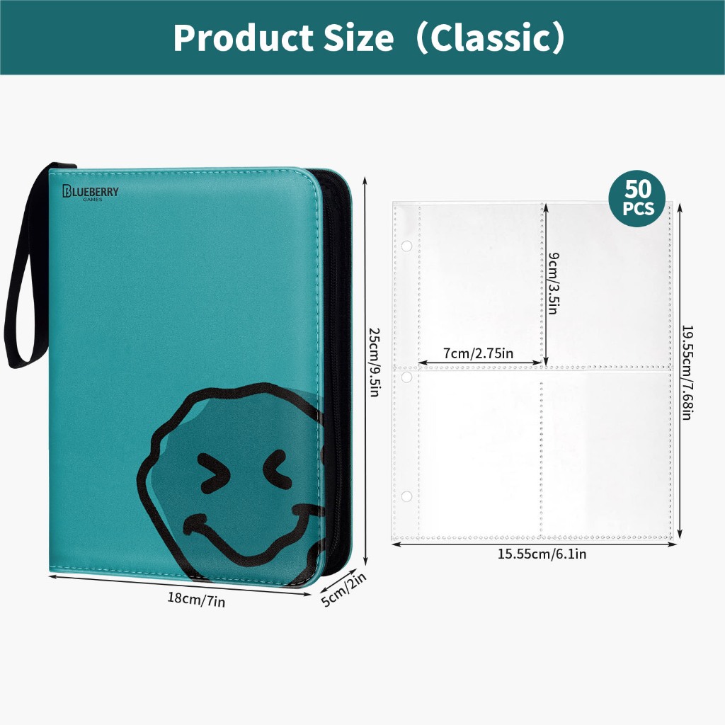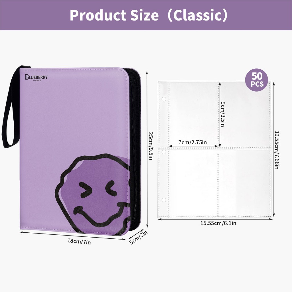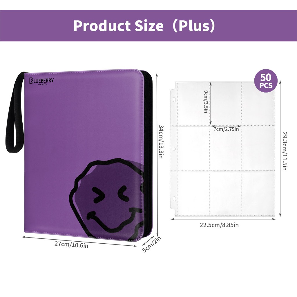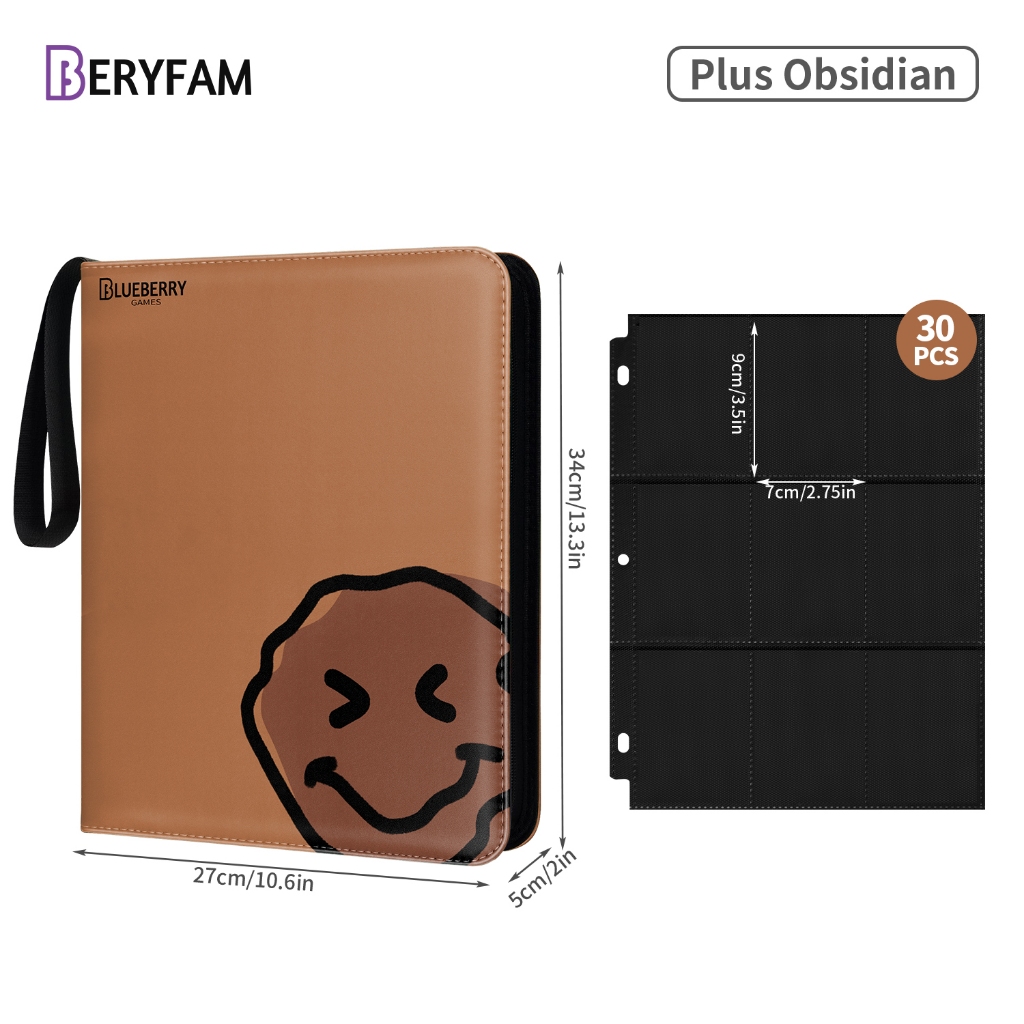 BERYFAM Binder Zipper Album 400/900Pocket Pokemon Leather LomoCard Binder Photocard Blueberry Series