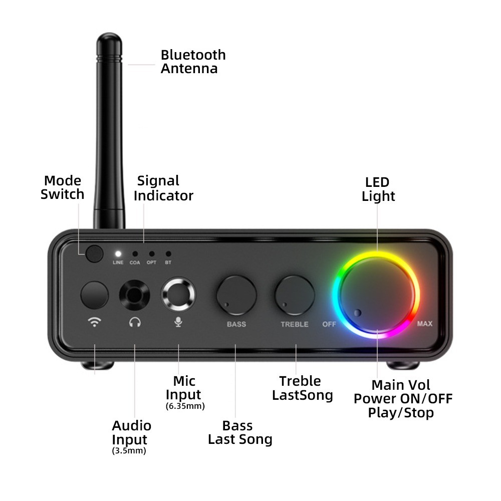 Bluetooth 5.3 Mini TPA3116D2 Class D Power Amplifier 2.0 Audio Amplifier 100Wx2 200W with Microphone Optical Coaxial Input