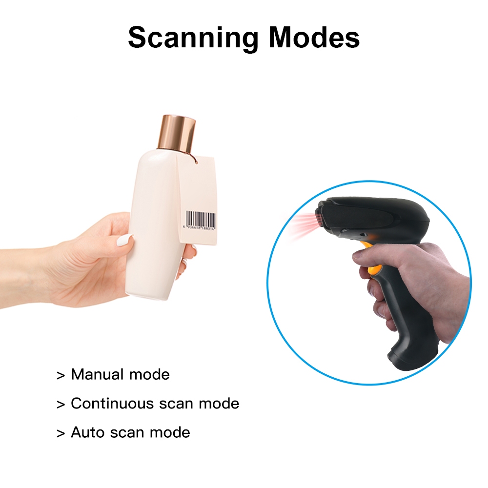Bluetooth Barcode Scanner, 2D 1D QR Code Screen Scanners Automatic Handheld Barcode Reader, Connect Smart Phone, Tablet, PC for Business Inventory Logistics
