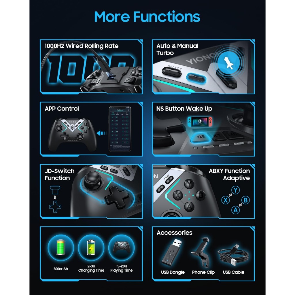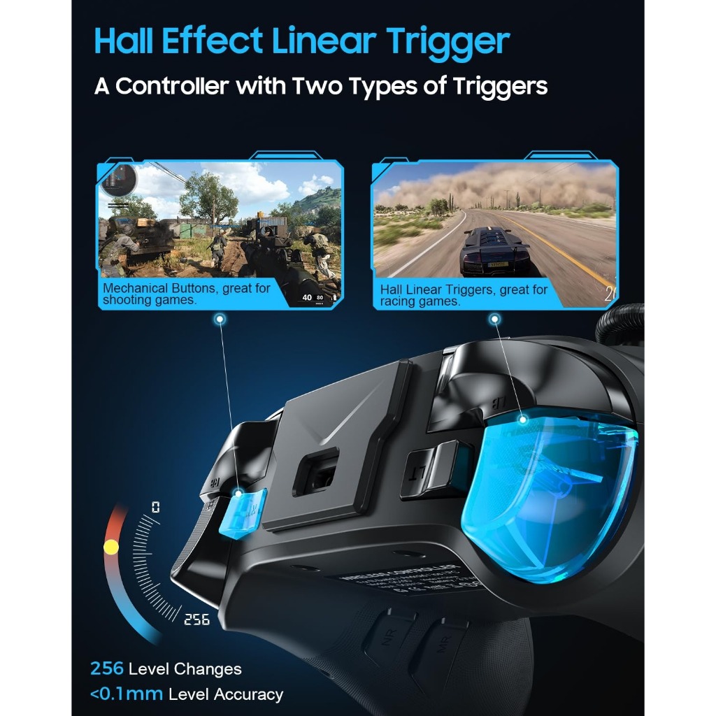 Bluetooth Controller for Windows PC/iPhone/Android/Switch/Steam Deck/TV, 2.4G Wireless Game Controller