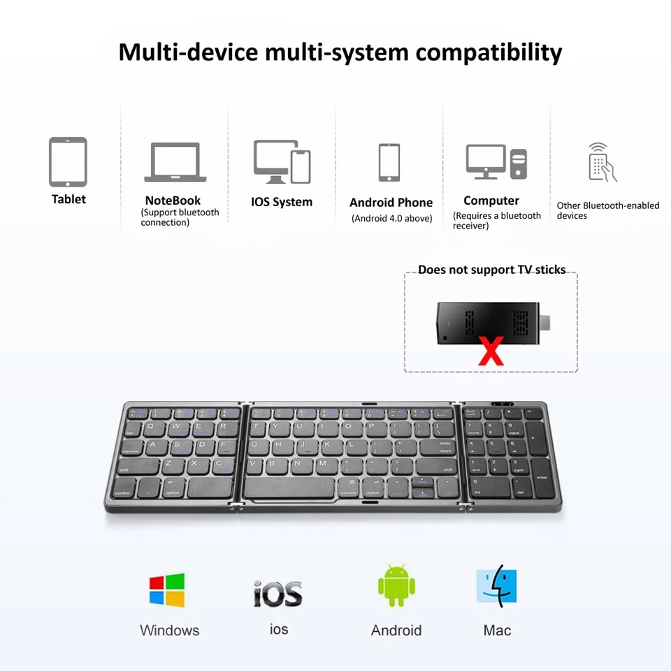 Bluetooth Foldable Keyboard with Numeric Phones Tablet Folding Wireless Keyboard for IOS/Android/Windows 3-Device Sync
