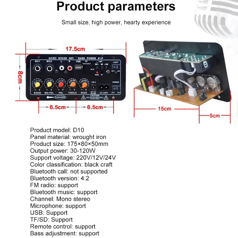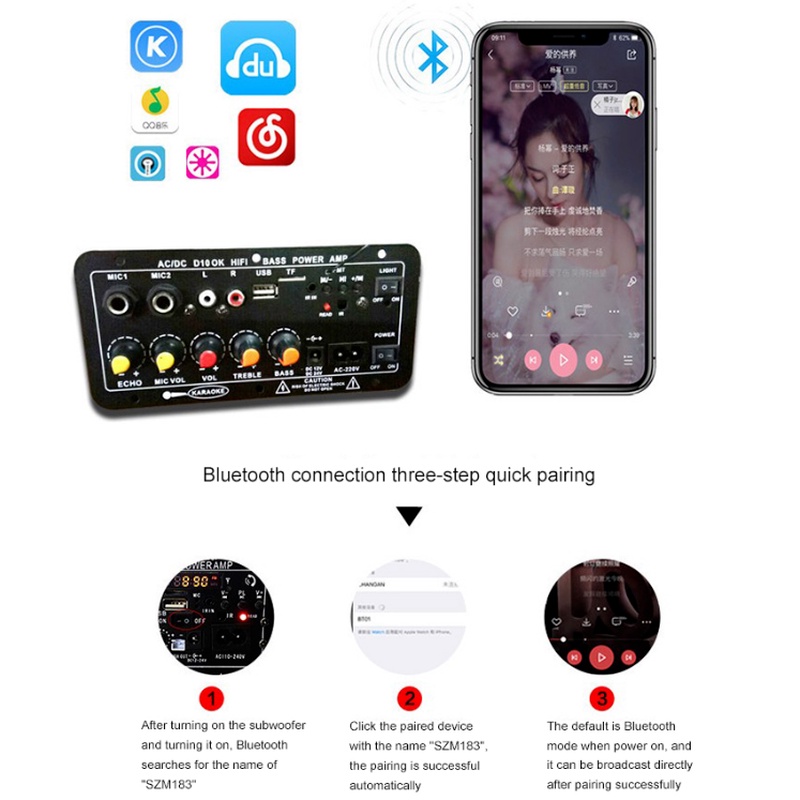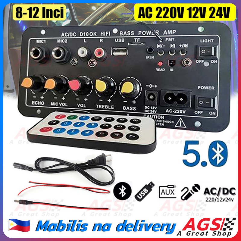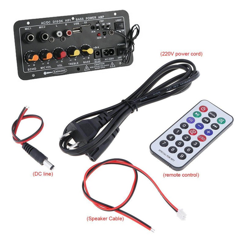 Bluetooth Power Amplifier Board AC 220V 12v 24v Digital Stereo Subwoofer Dual Microphone Speaker