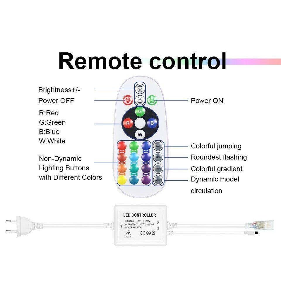 Bluetooth RGB LED Neon Strip Light 220V Smart Control IP67 Waterproof Flexible Ribbon Rope light