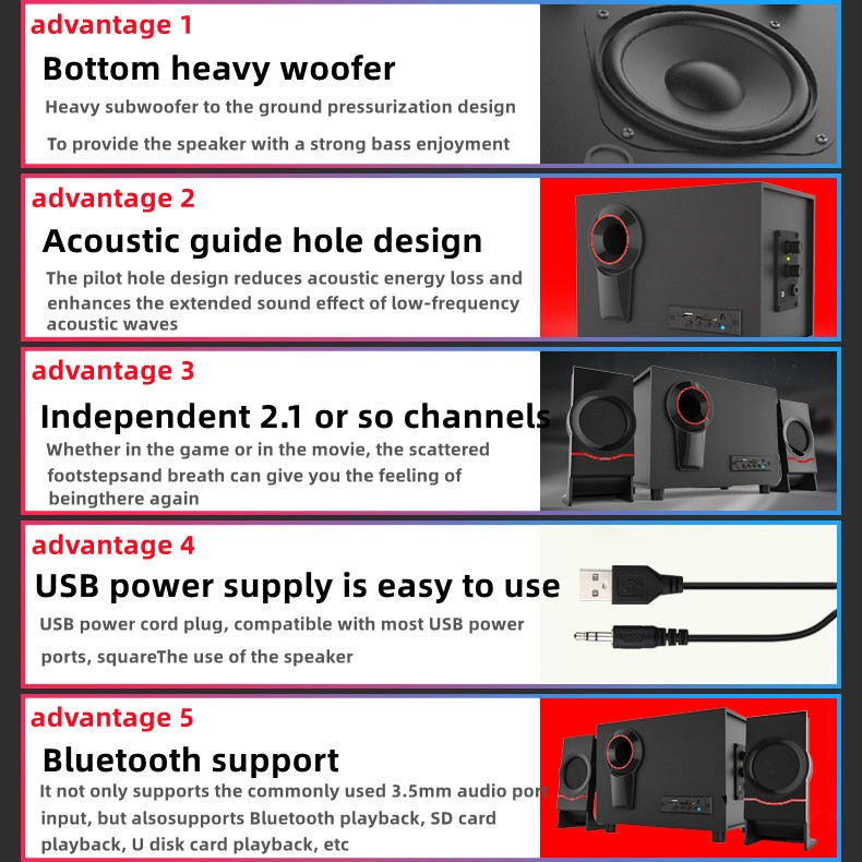 Bluetooth Speaker with Subwoofer 3D sound quality PC Desktop Speaker Wired USB Notebook TV Speaker