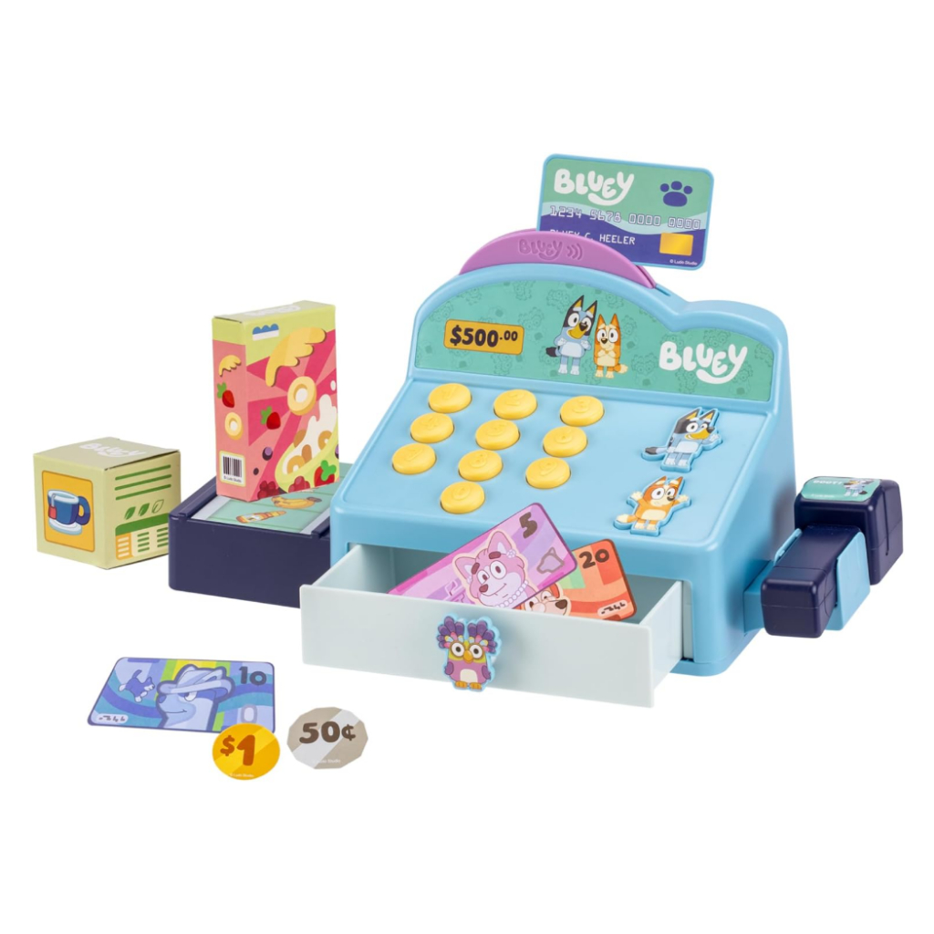 Bluey Cash Register. Press The Buttons to Hear Beeps, Sounds and Phrases from Bluey and Bingo
