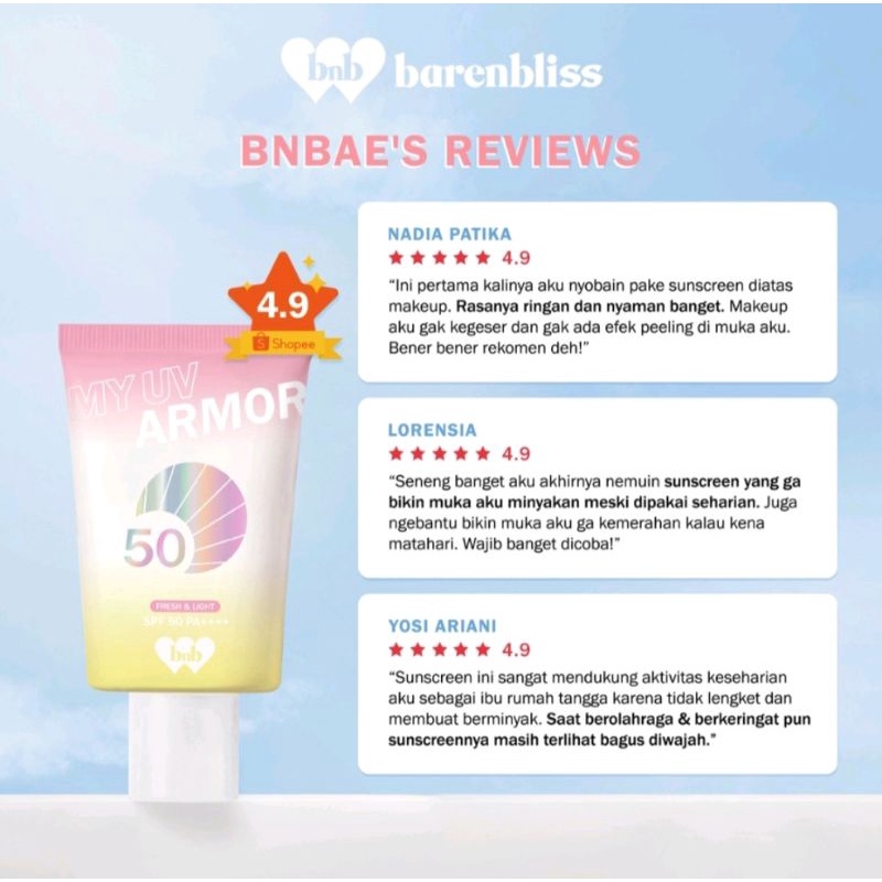 Bnb Barenbliss My UV Armor SPF 50 PA++++ Face Sunscreen Gel Moisturizer 30g