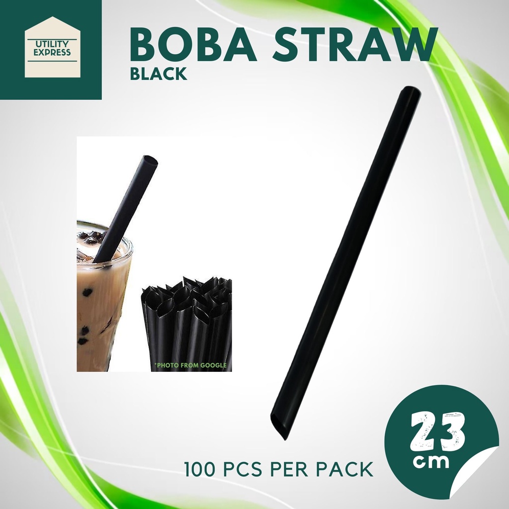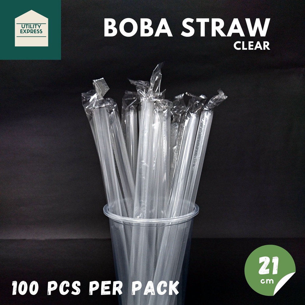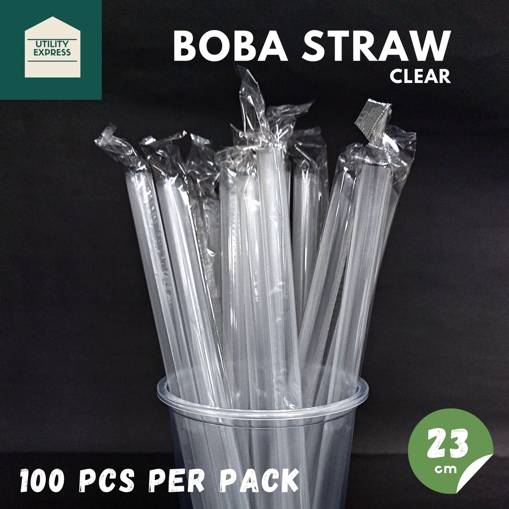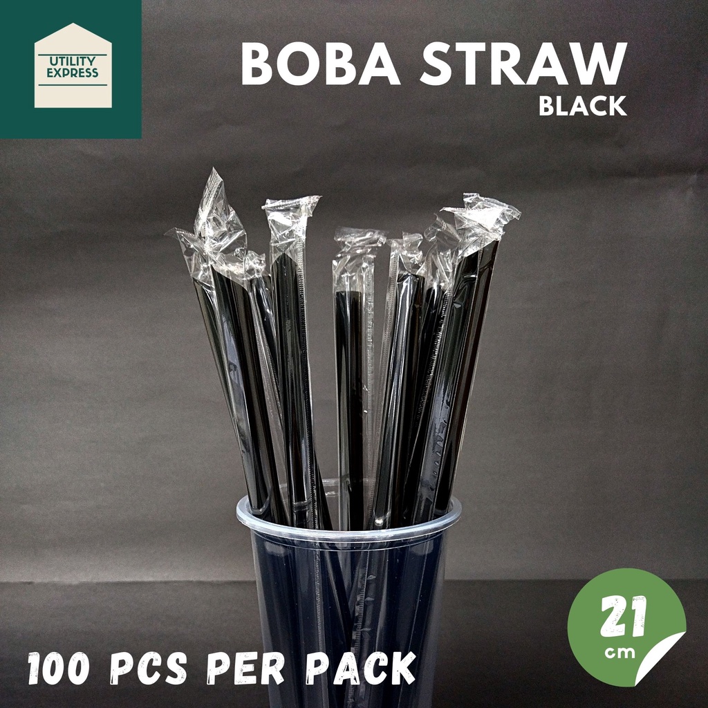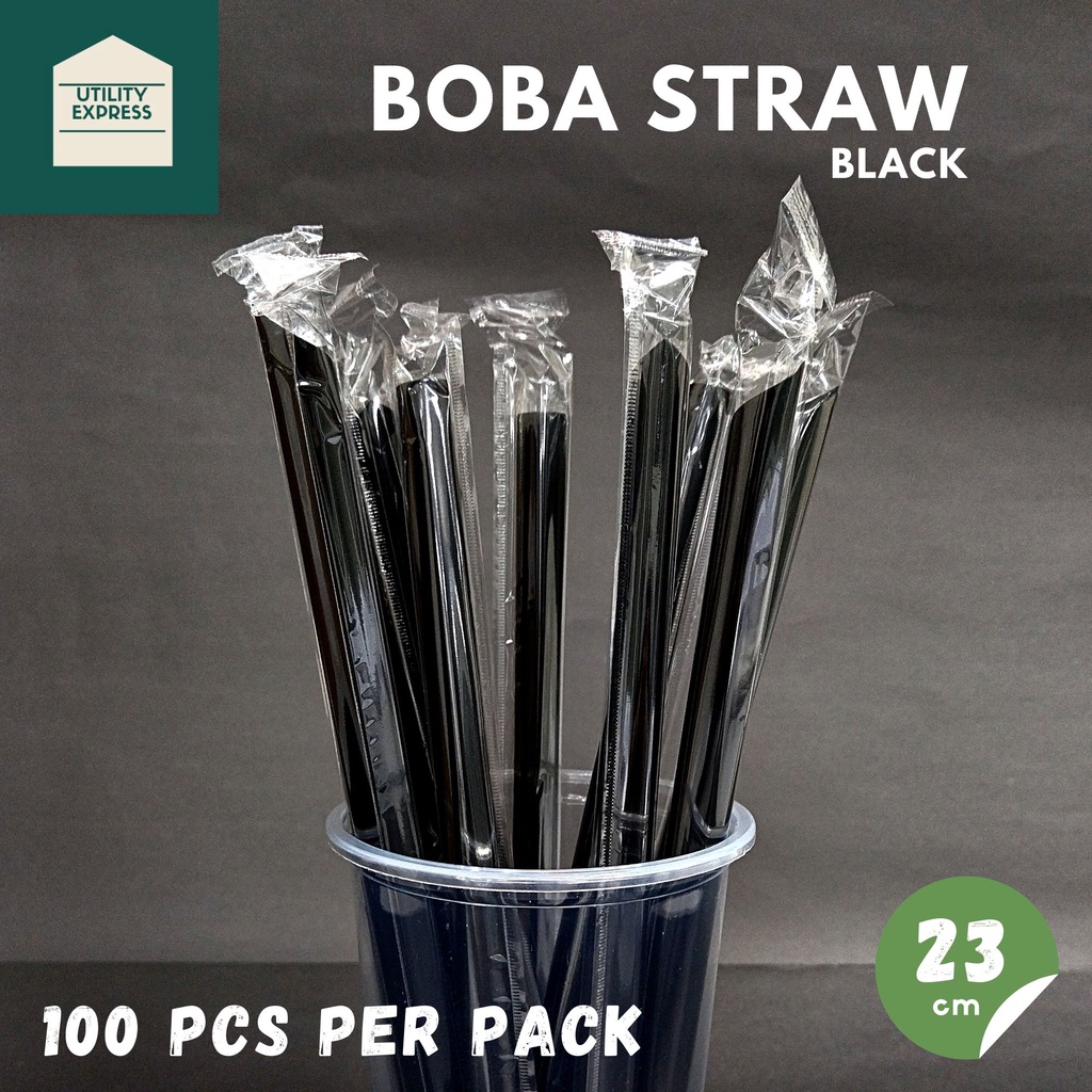 Boba Straw Milk Tea Pearl Straw Black/Clear Individually Packed By 100's