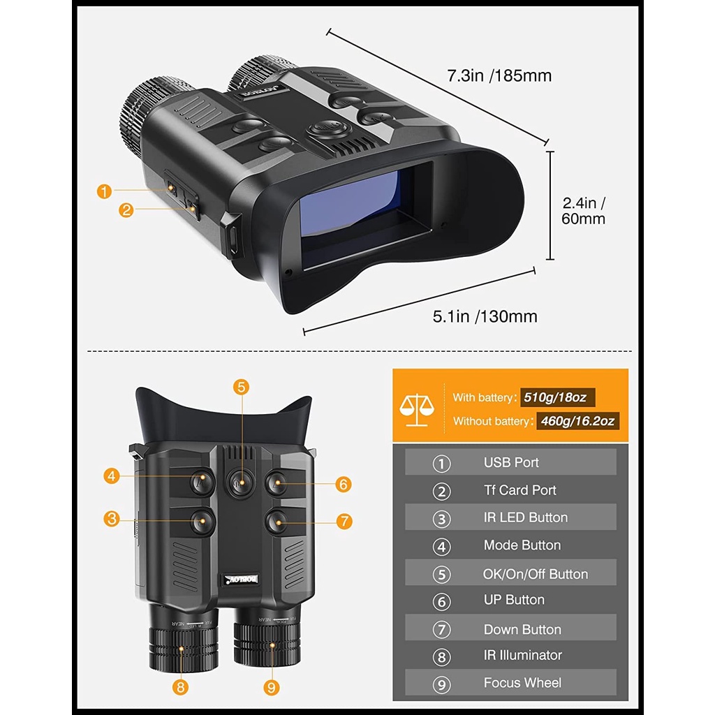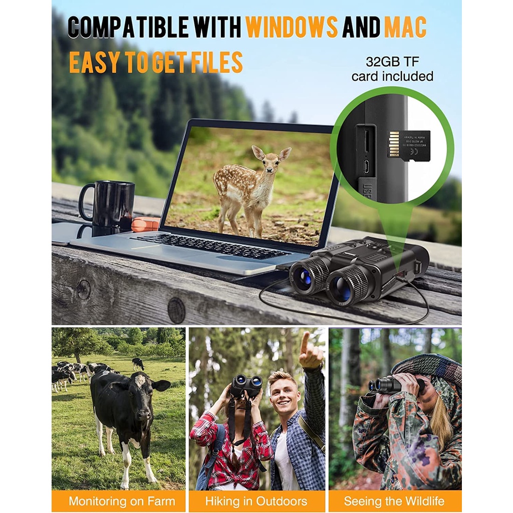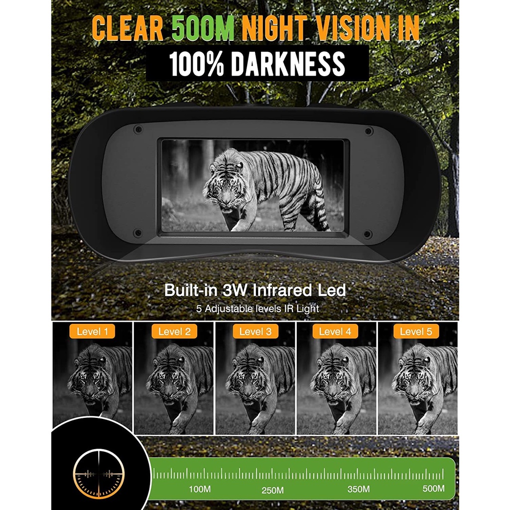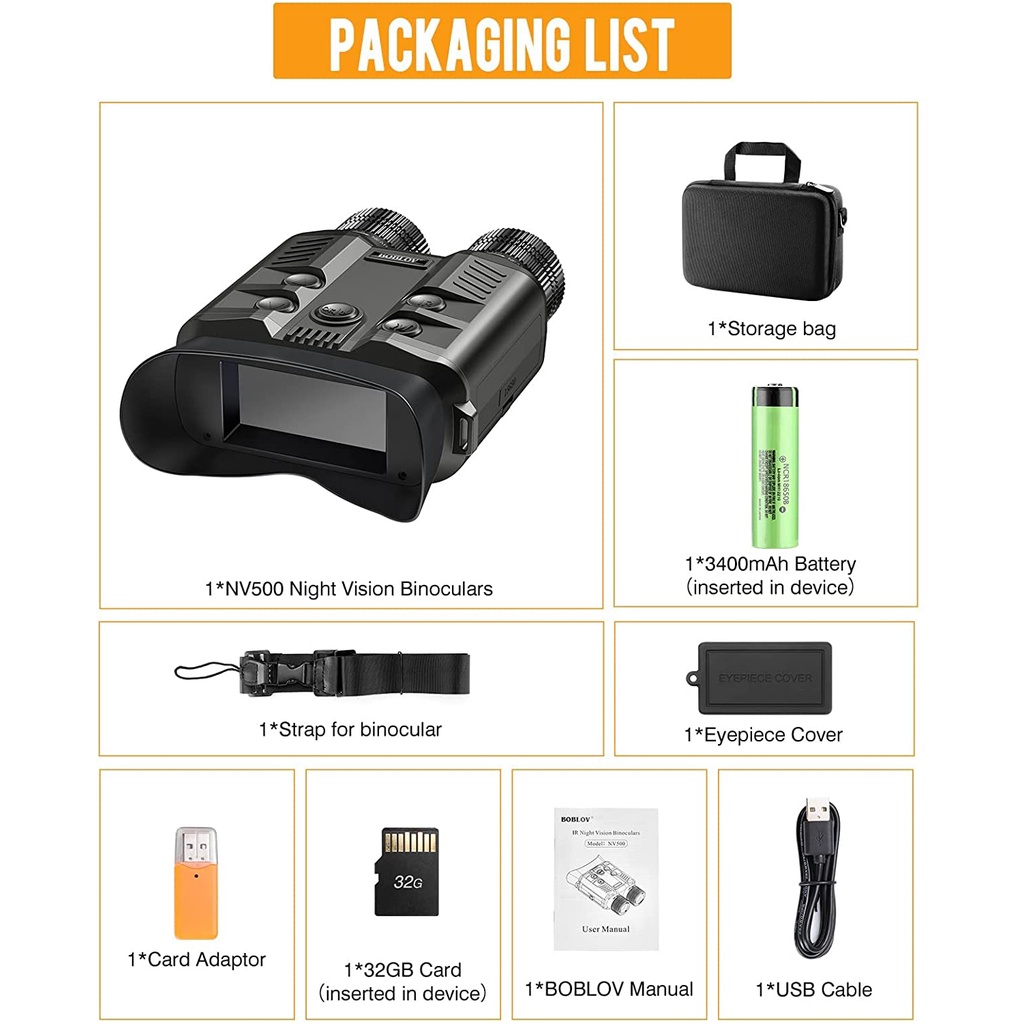 Boblov Waterproof Monocular Binoculars Telescope Scope HD 1080P/30fps 500M Full Dark Night Vision Binocular with 3400mAh Battery&32G Card 3inch Large Viewing Screen, 5X Optical Dig