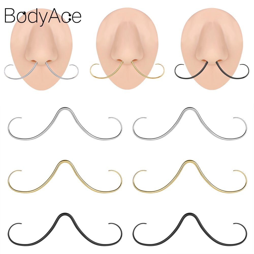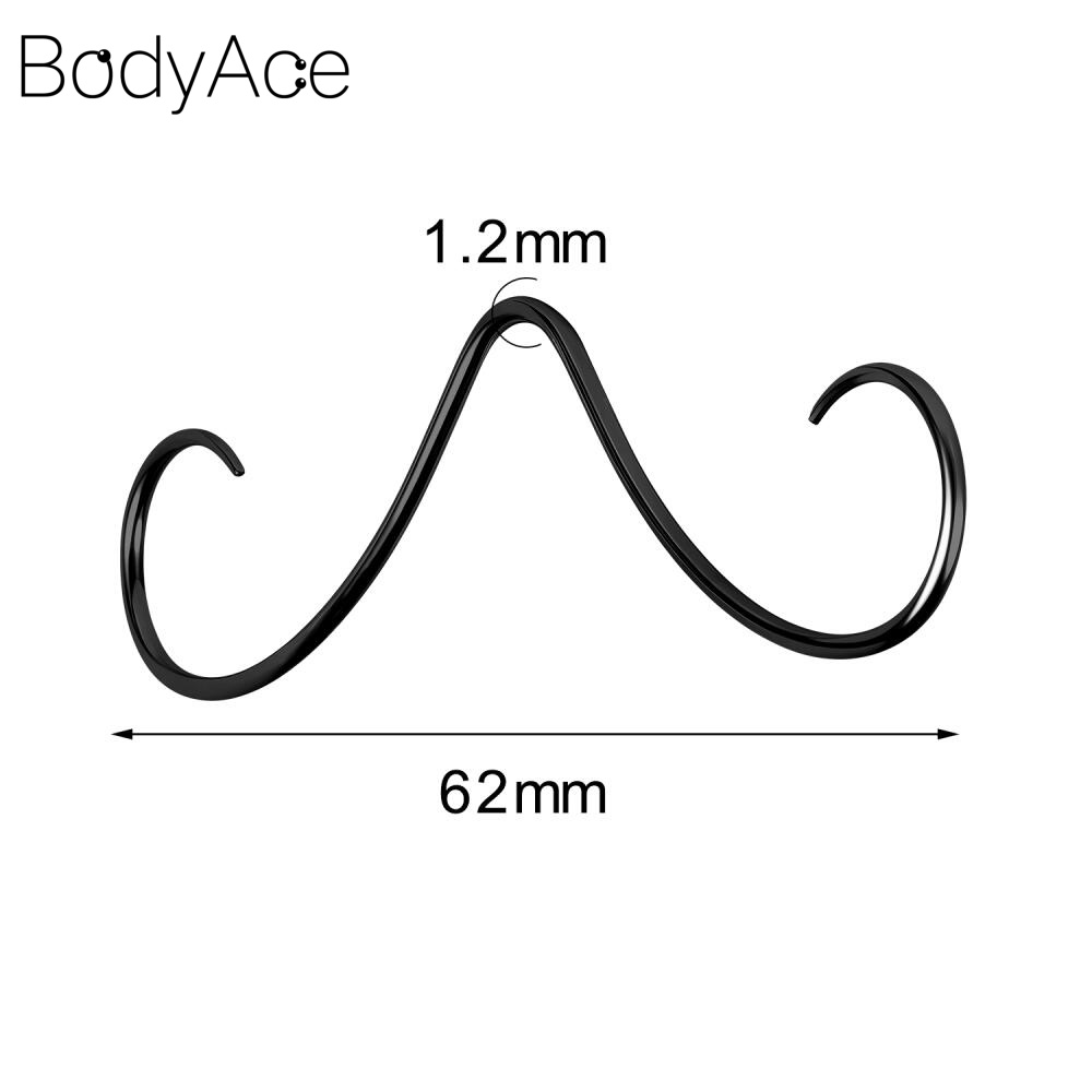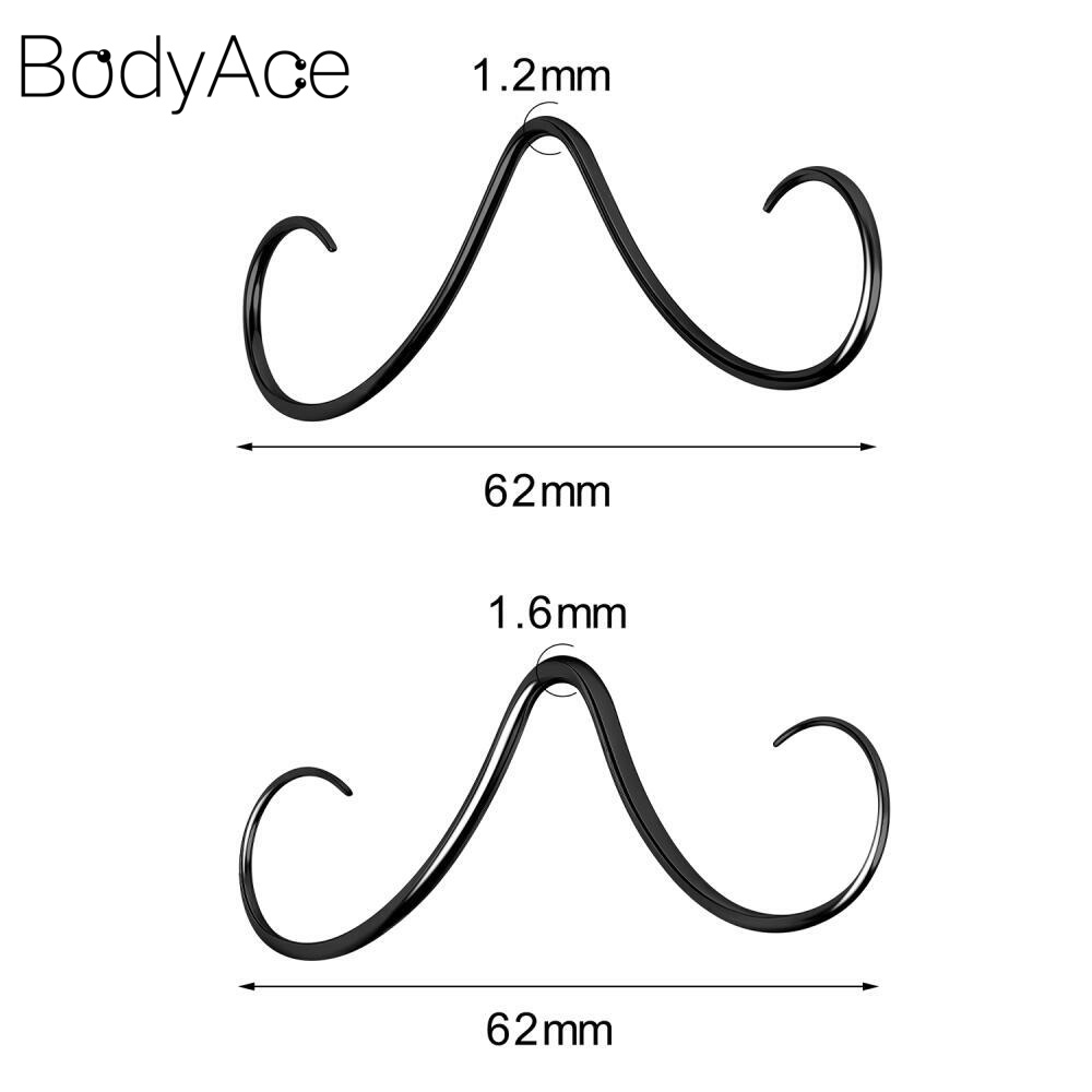 Bodyace 1 PC Mustache Shape Septum Ring Stainless Steel Nose Piercing 14/16G Black Nose Ring