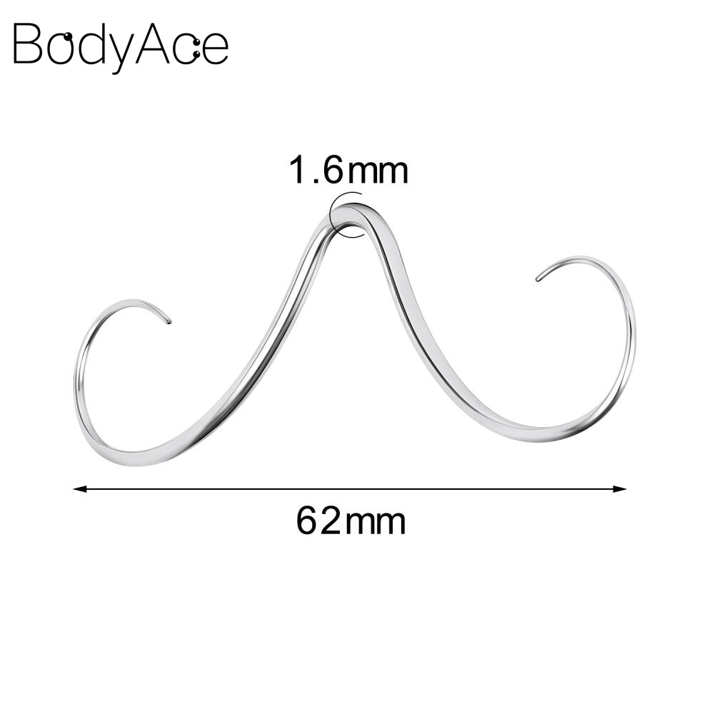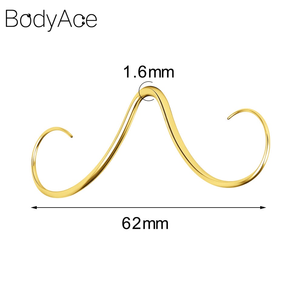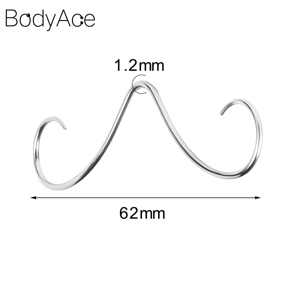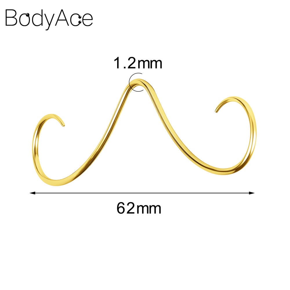 Bodyace 1 PC Mustache Shape Septum Ring Stainless Steel Nose Piercing 14/16G Black Nose Ring