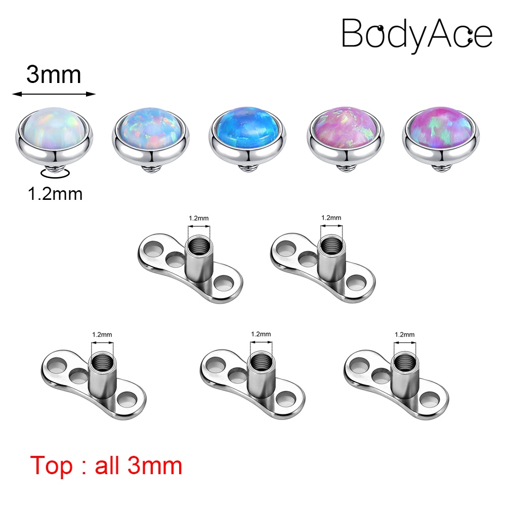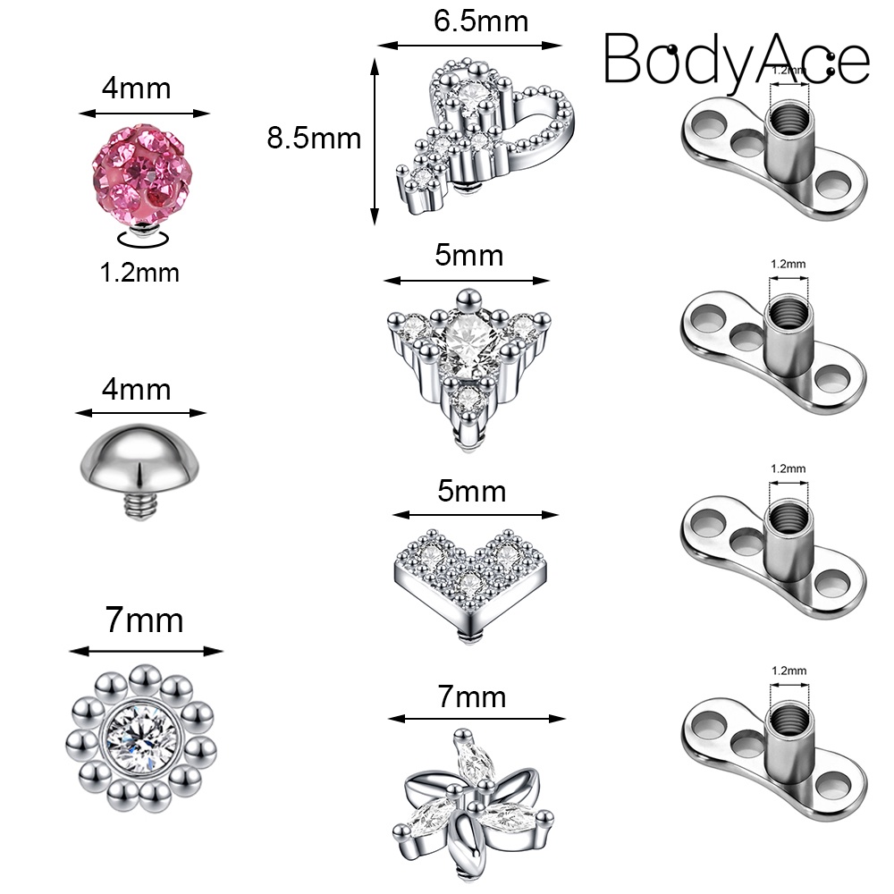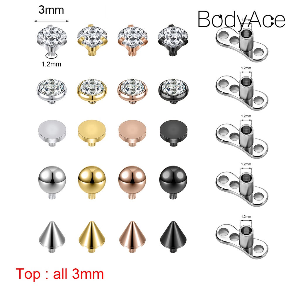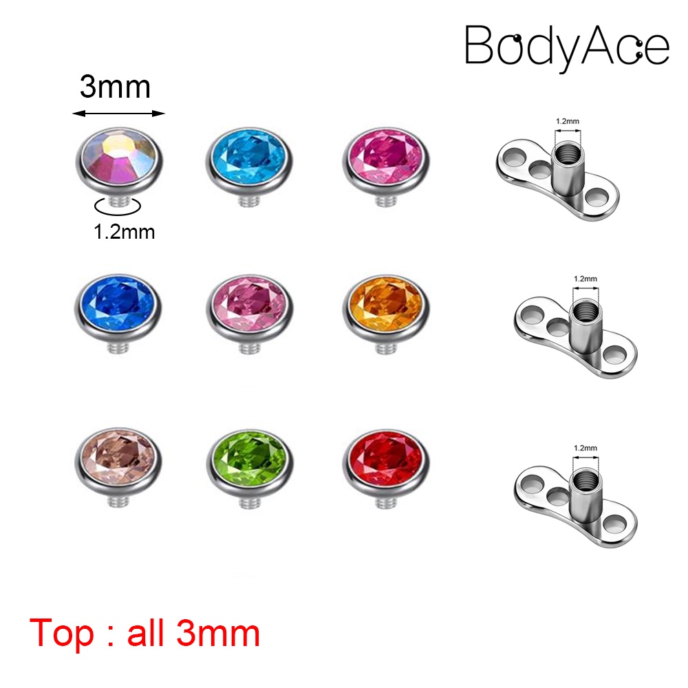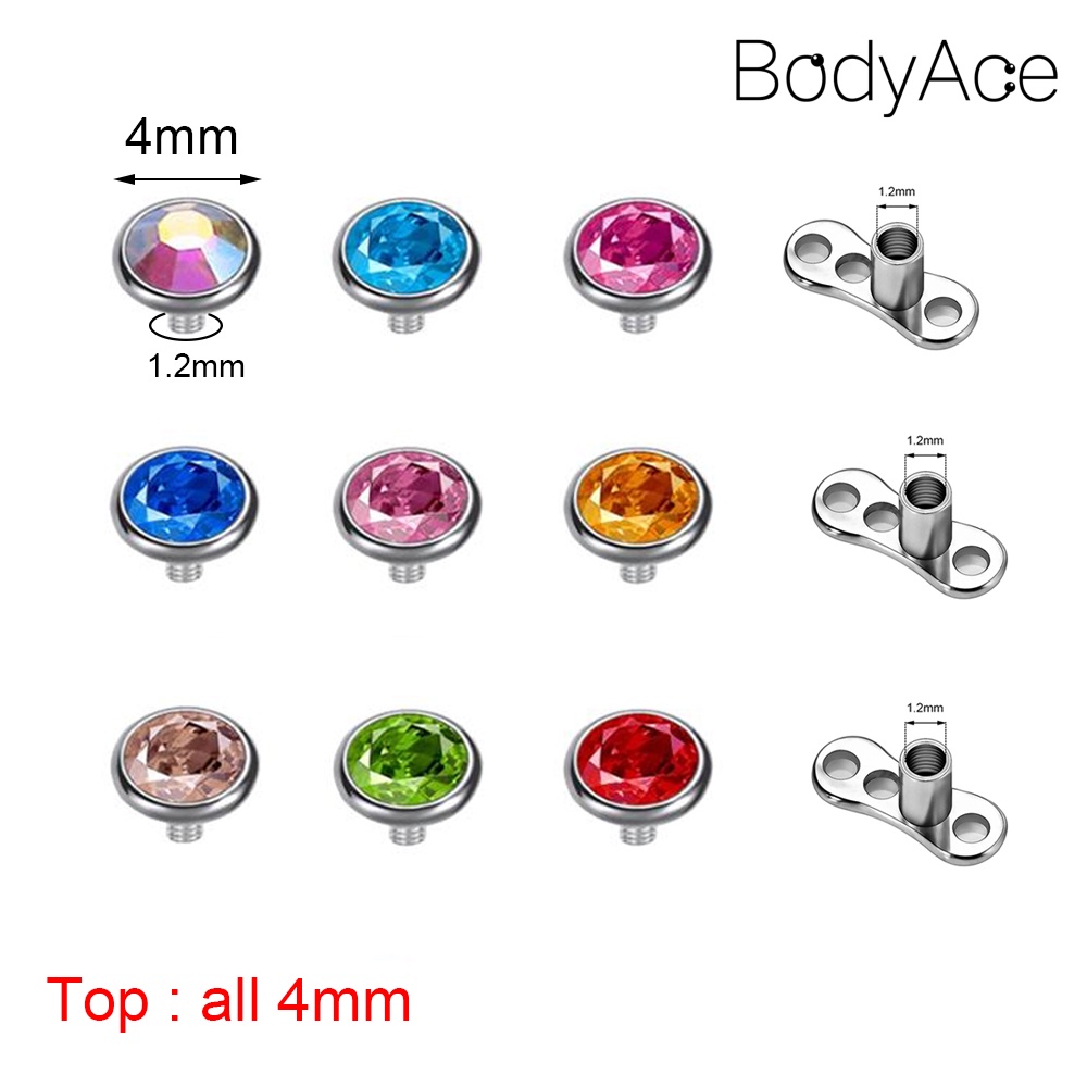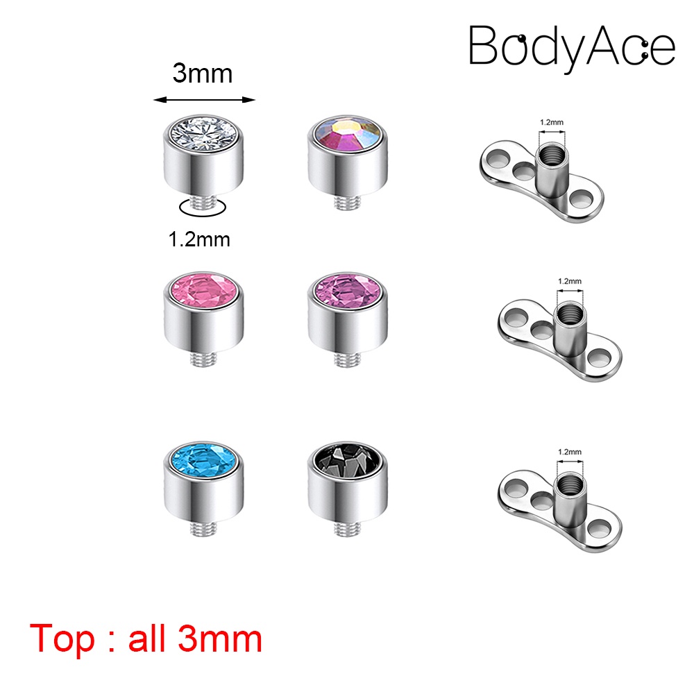 Bodyace 1 Set 2.5/3/4mm Color Crystal Micro Dermal Piercing Surgical Steel Sun Flower Dermal Anchor Skin Smile Piercings