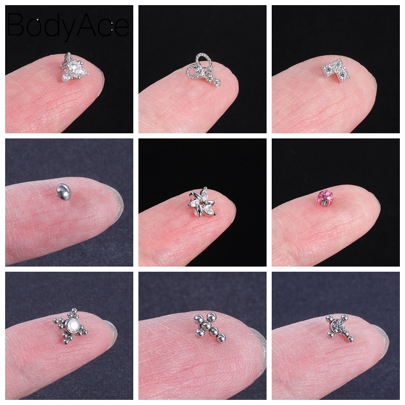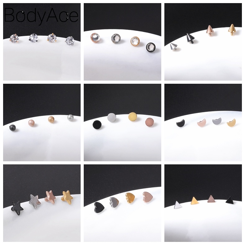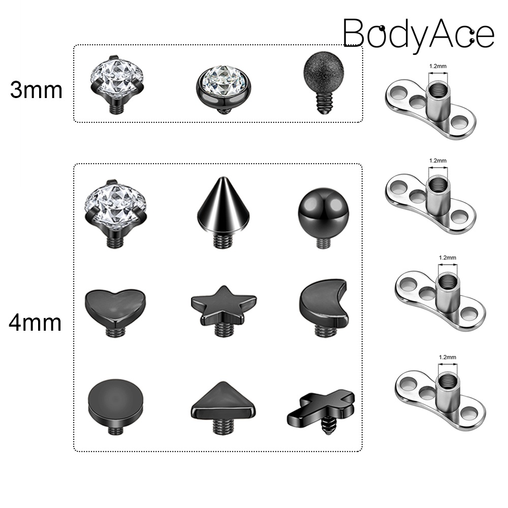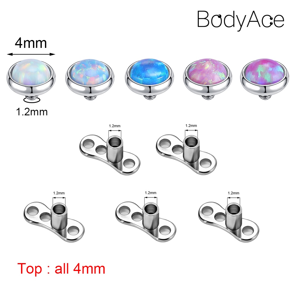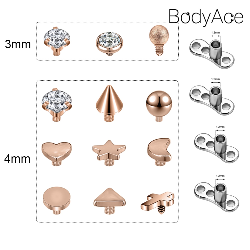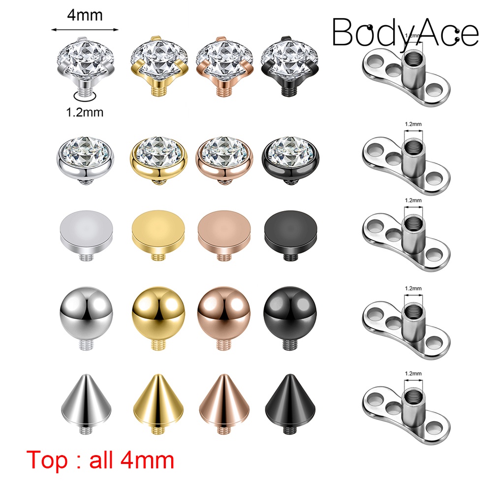Bodyace 1 Set 2.5/3/4mm Color Crystal Micro Dermal Piercing Surgical Steel Sun Flower Dermal Anchor Skin Smile Piercings