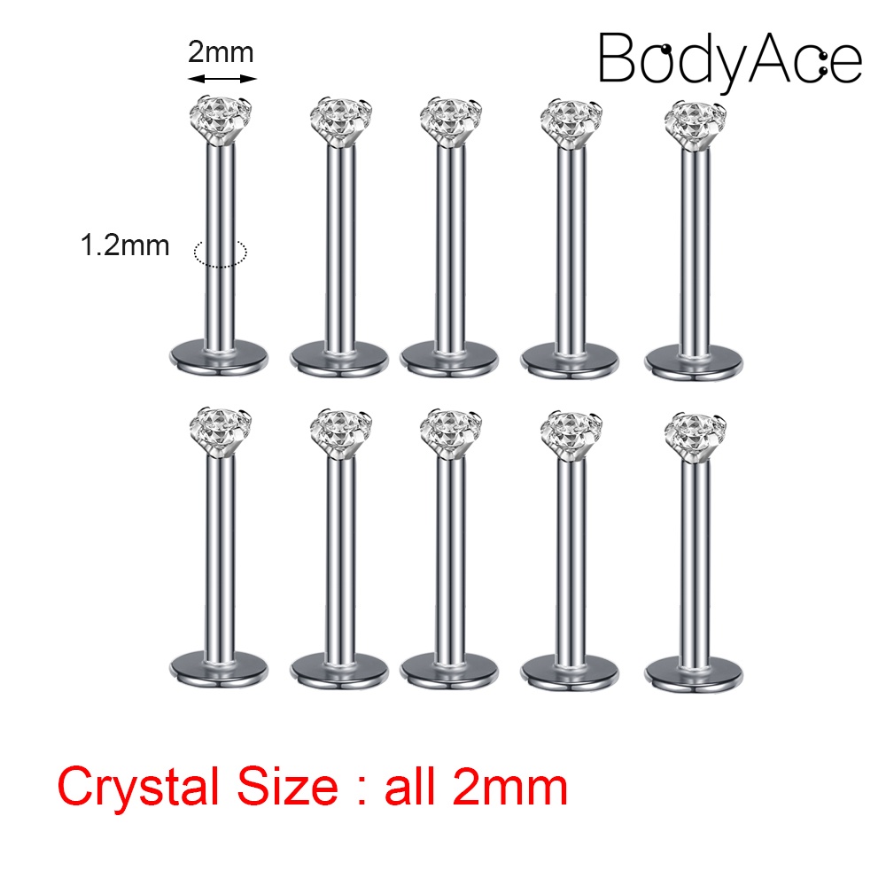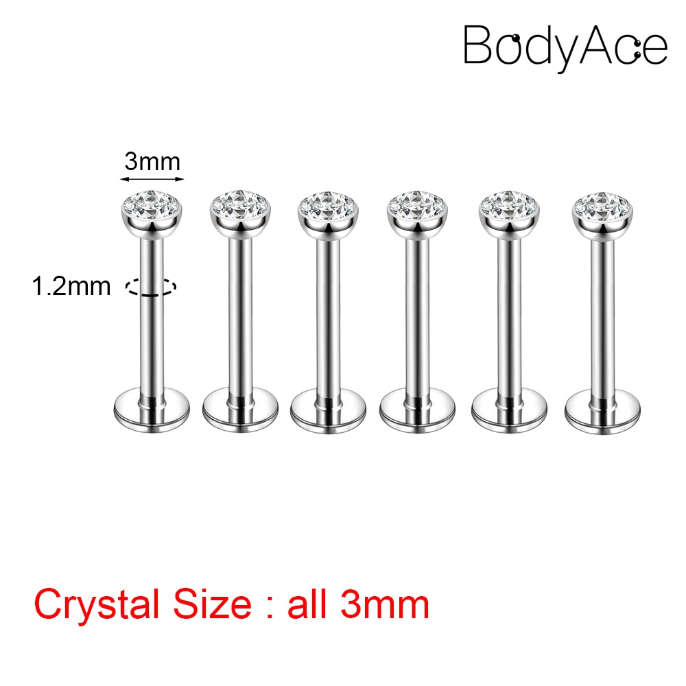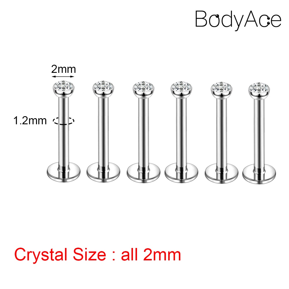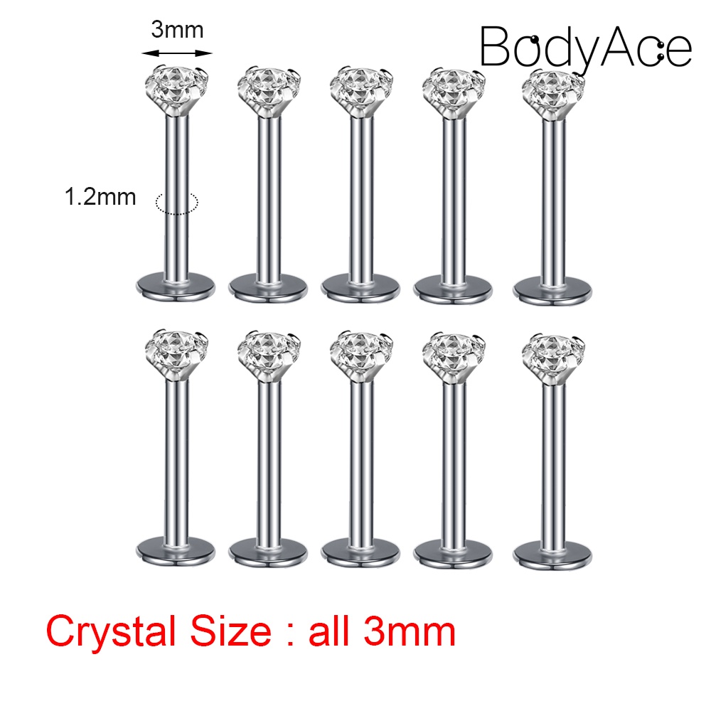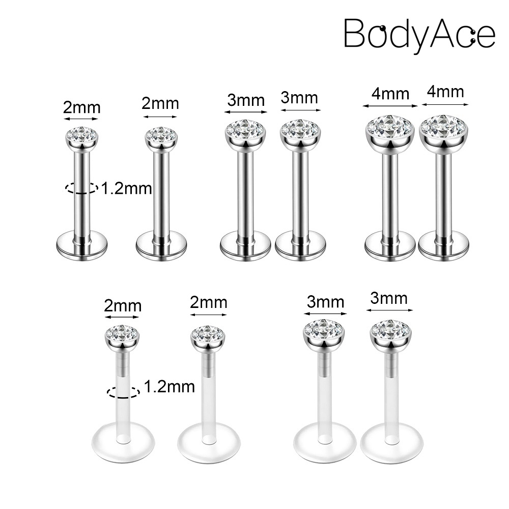 Bodyace 1 Set Stainless Steel Lip Labret Piercing Crystal Monroe Lip Stud Helix Tragus Piercing Cartilage Earrings