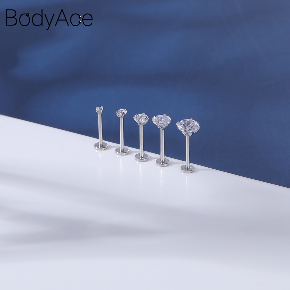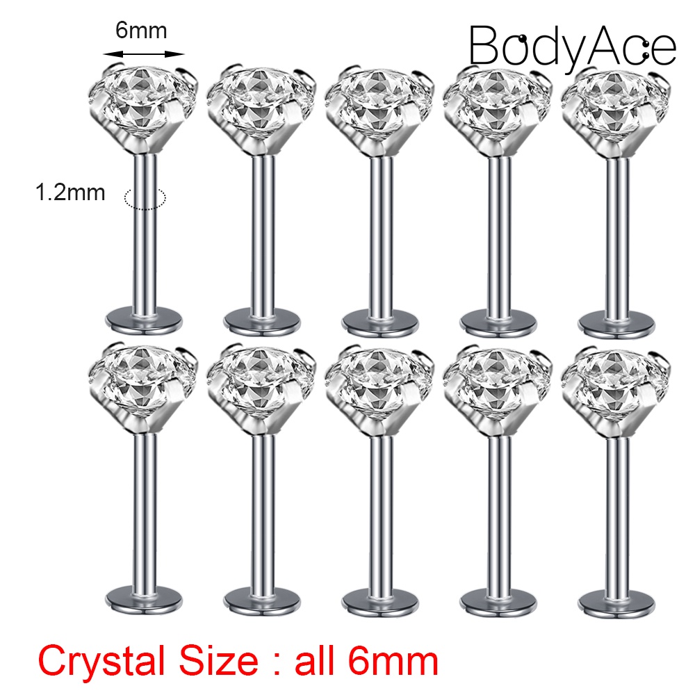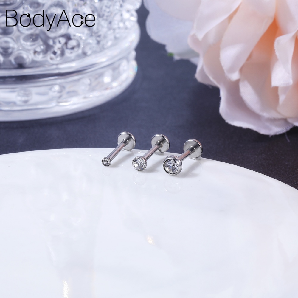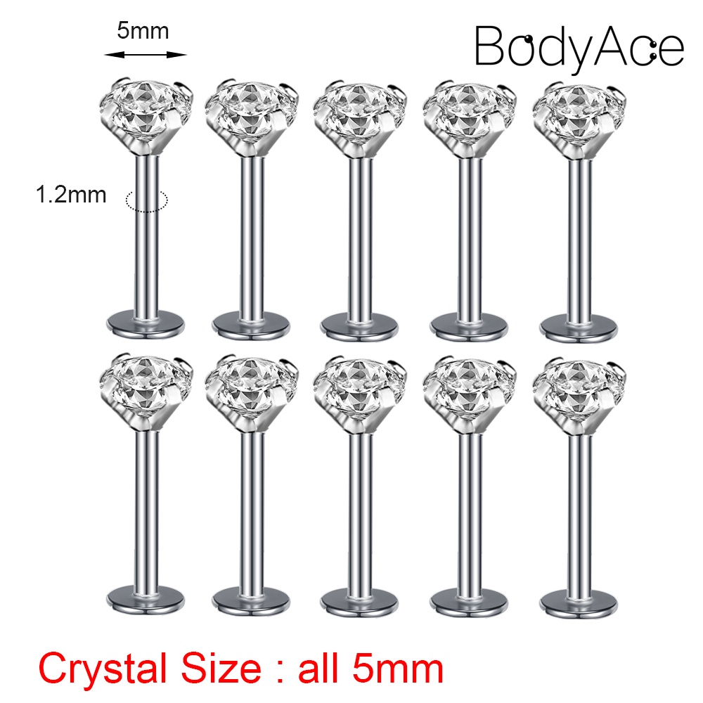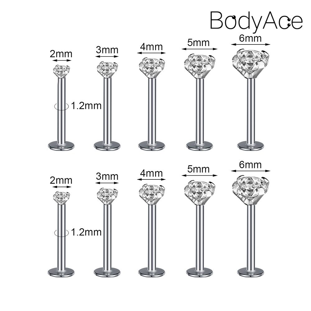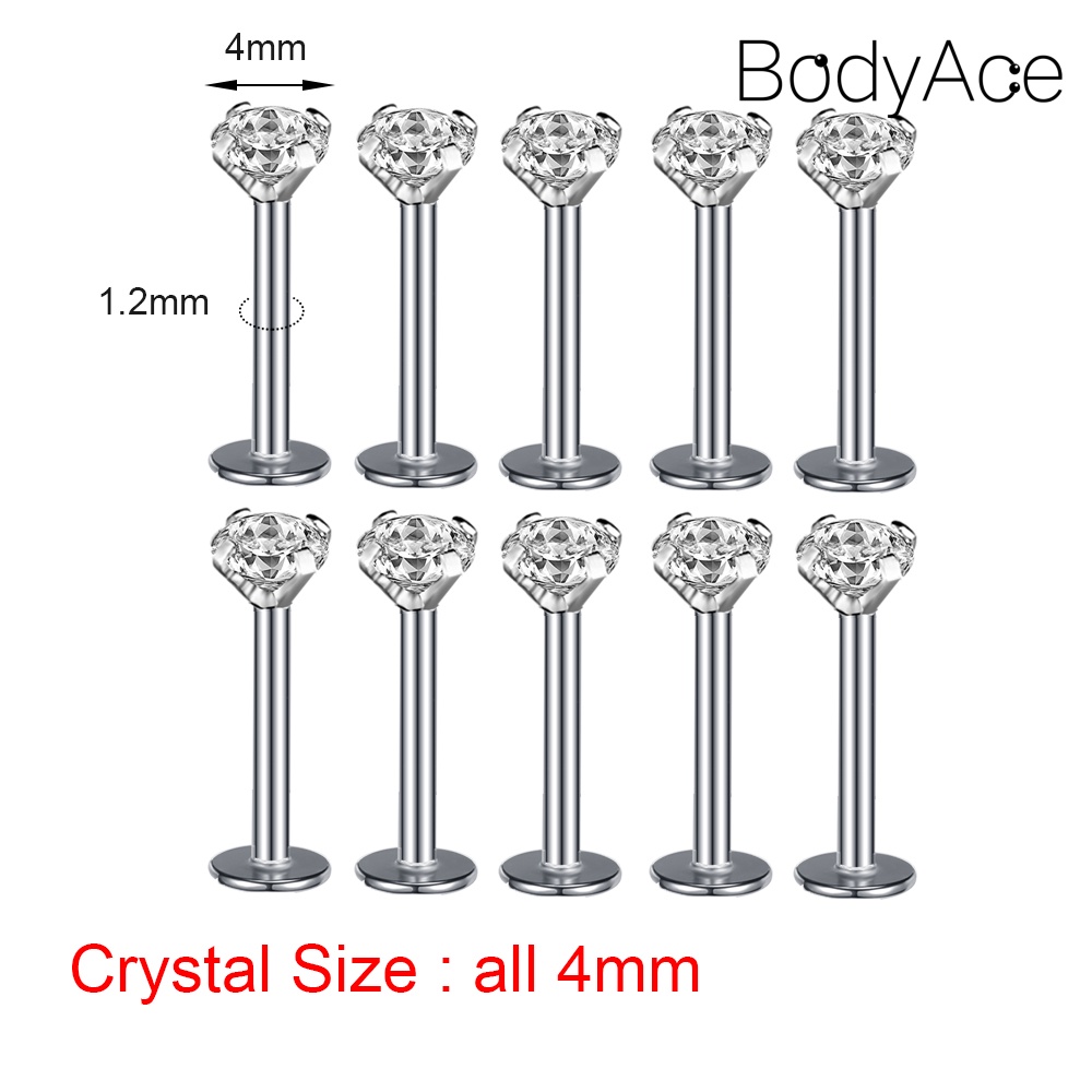 Bodyace 1 Set Stainless Steel Lip Labret Piercing Crystal Monroe Lip Stud Helix Tragus Piercing Cartilage Earrings