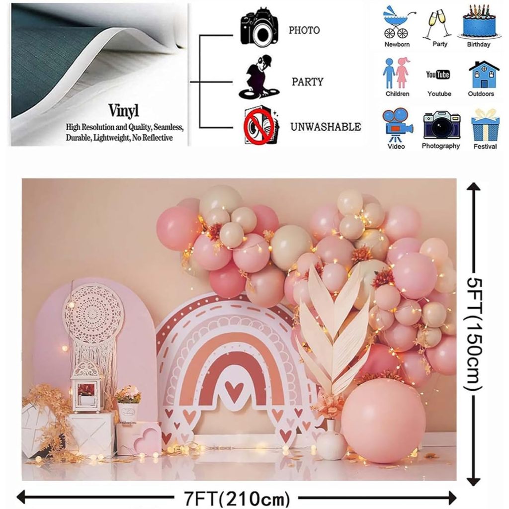 Bohemia Rainbow Photography Backdrop Boho Balloon Baby 1st Birthday Party Dreamcatcher Background Bohemian Pampas Grass Party Decorations Backdrop