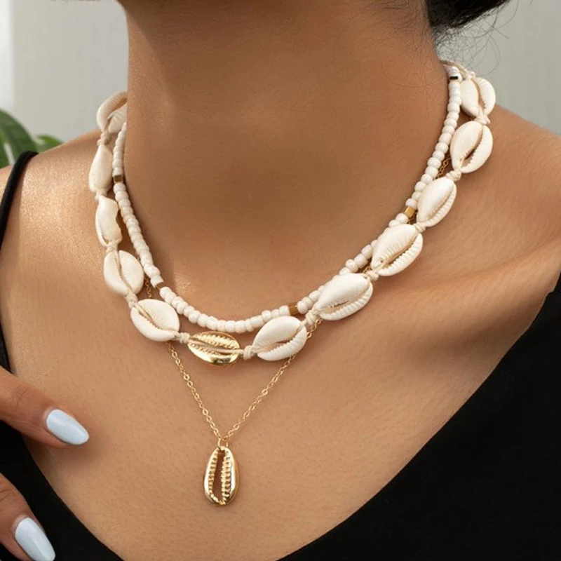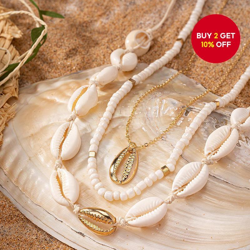 Beach Vacation Boho Beach Jewelry Set Handmade Beaded Necklace Shell Conch Pendant
