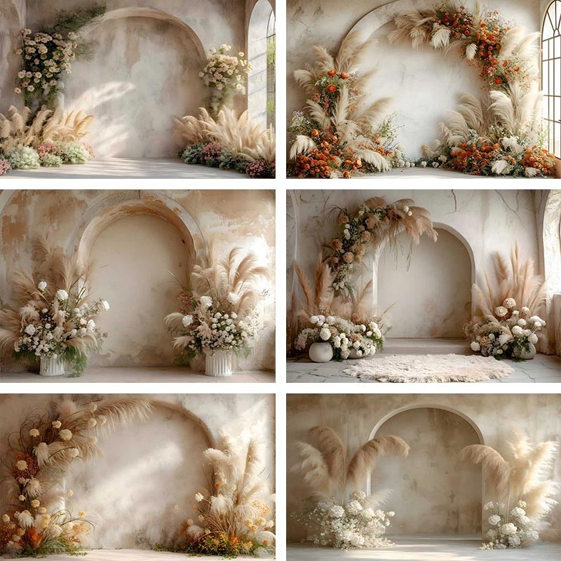 Boho Pampas Floral Backdrop Photography Wedding Pregnant Flowers Arch Wall Background Party Decor As The Pic Print