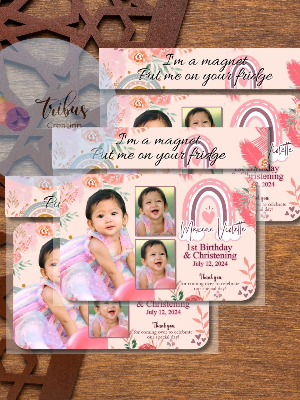 Boho Rainbow Ref magnet souvenir for Christening, Birthday, Dedication