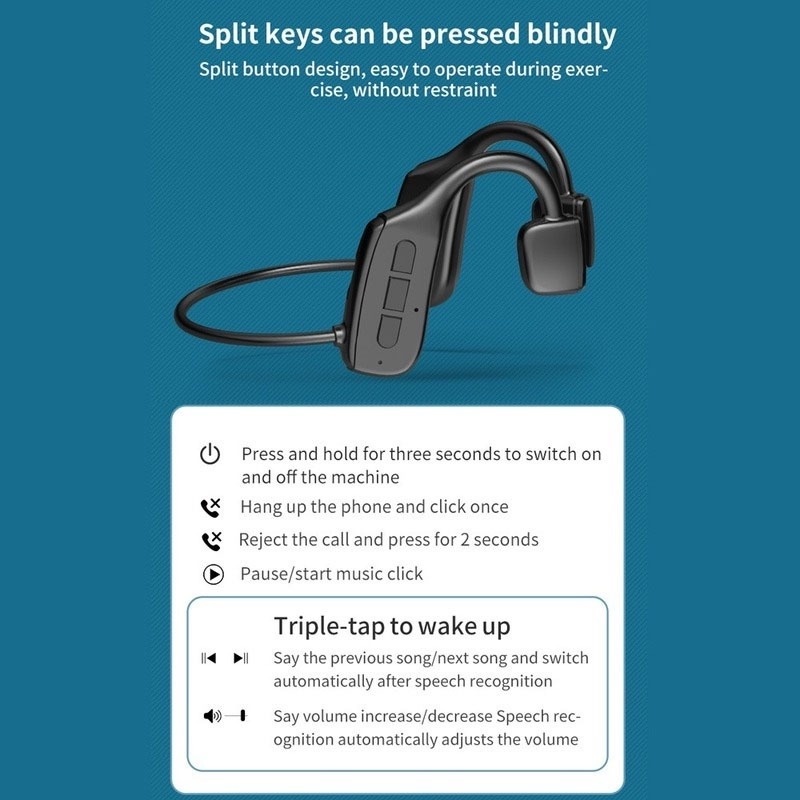 Bone Conduction Headset Support SD/TF Memory Card Play Bluetooth Wireless Waterproof Sports With Microphone