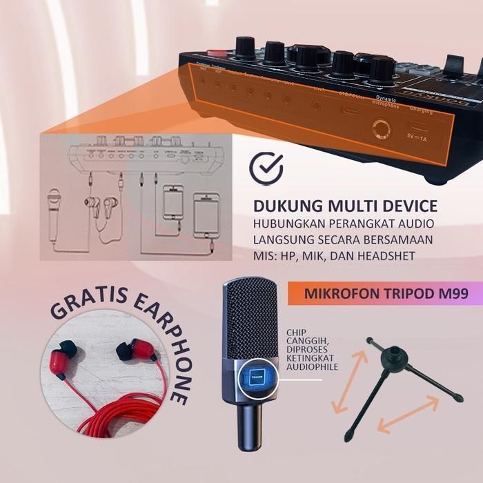 bonkyo F999 SoundCard + M999 Mic combination set Bluetooth wireless mixer noise reduction live set