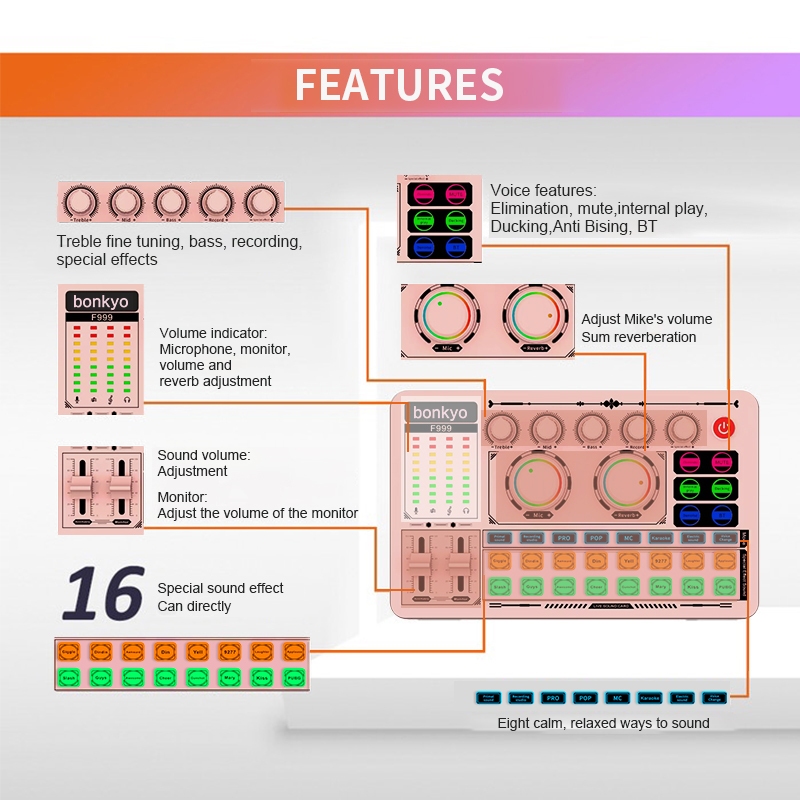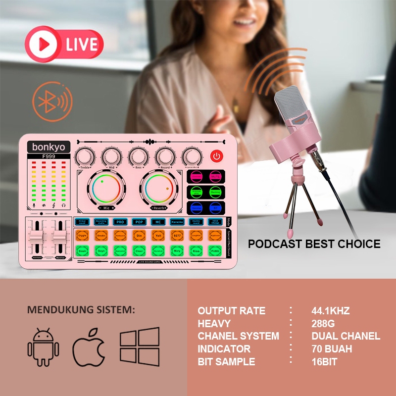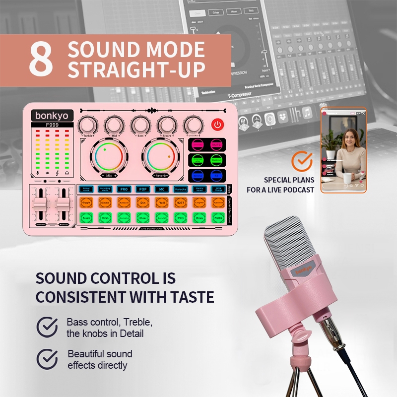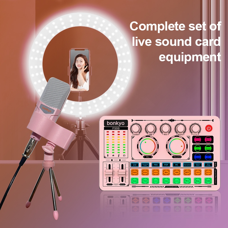 bonkyo Pink F999 Soundcard combination set live mixer noise reduction audio interface for recording
