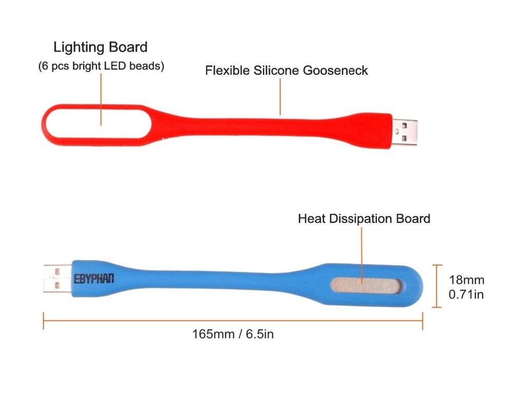 Book Light Mini USB LED Light 5V 1.2W Power Bank Reading Light Notebook Portable LED Lamp 9 colors USB Night Lights(1pcs)