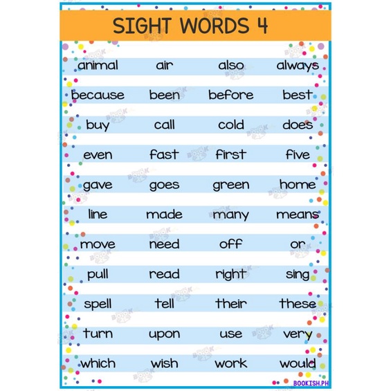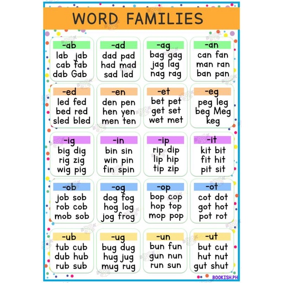Bookish.Ph Educational Sight Words, Word Families, Abakada Wall Chart for Kids | Laminated