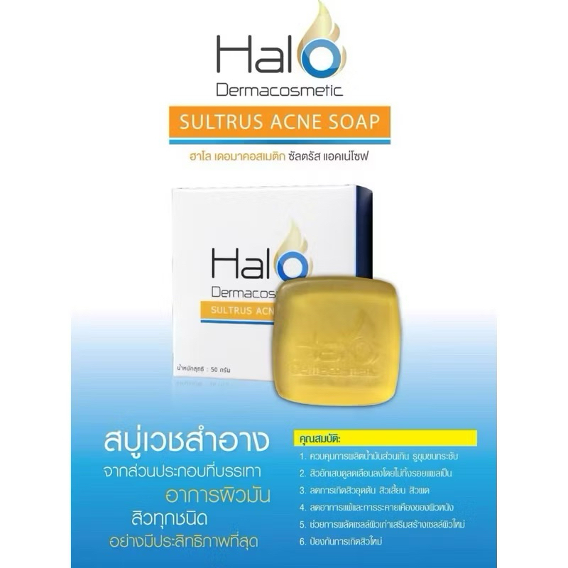 Halo Dermacosmetics Sultrus Acne Soap 50 Grams Treatment Inflammation Clogged Pores Oil Control (1 Bar)