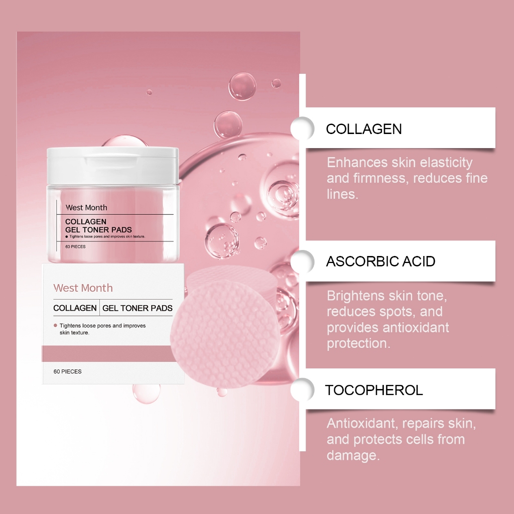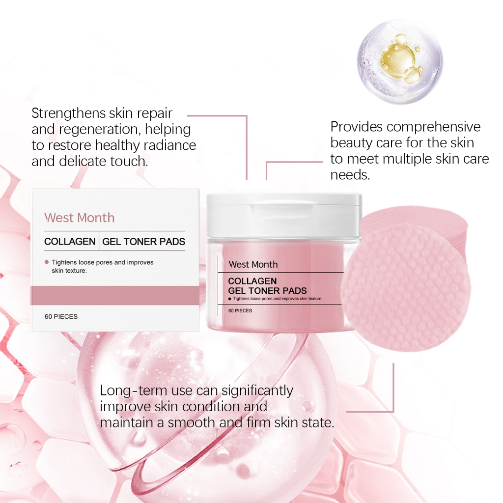 West Month Collagen Gel Toner Pads 60pcs Improve Dullness Fade Fine Lines Brighten Firming Face Pad