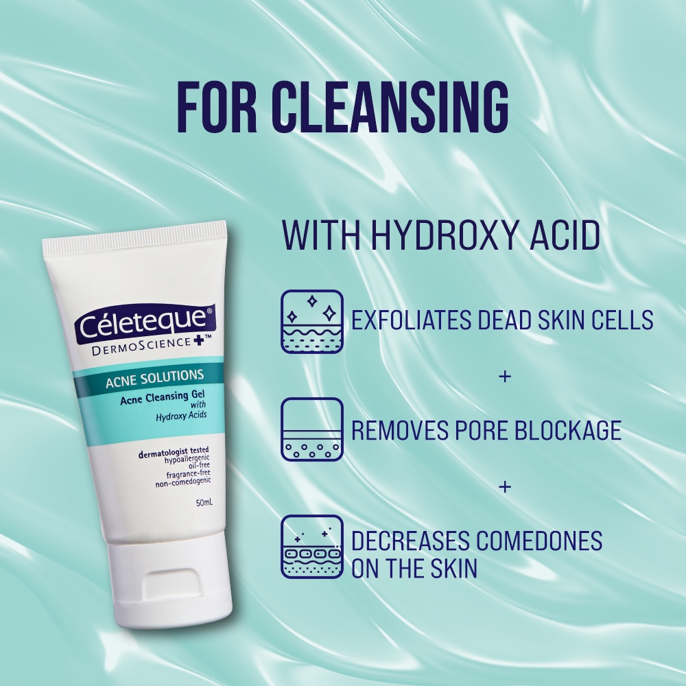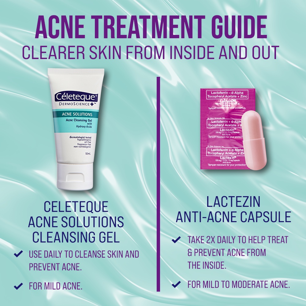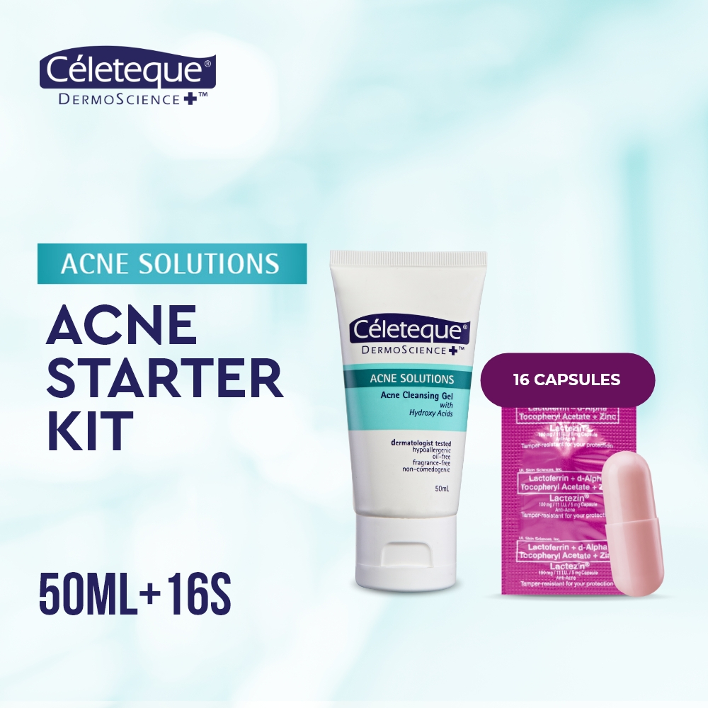 ACNE STARTER KIT (Celeteque Acne Solutions Cleansing Gel 50ml + Lactezin 100mg Anti- Acne 16 capsule