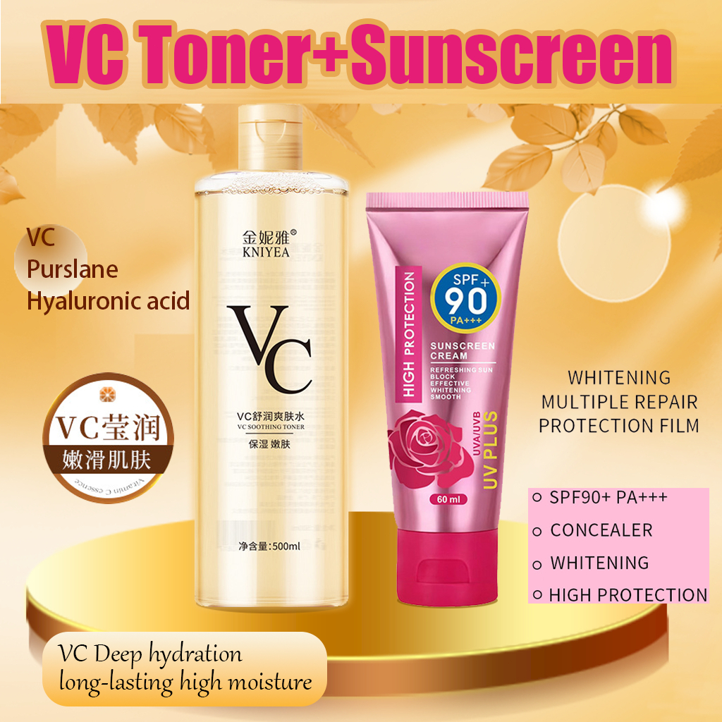 Espesyal na Pakete,VC Toner Deep hydration,&Rose Sunscreen Cream High Protection PA++++ SPF90