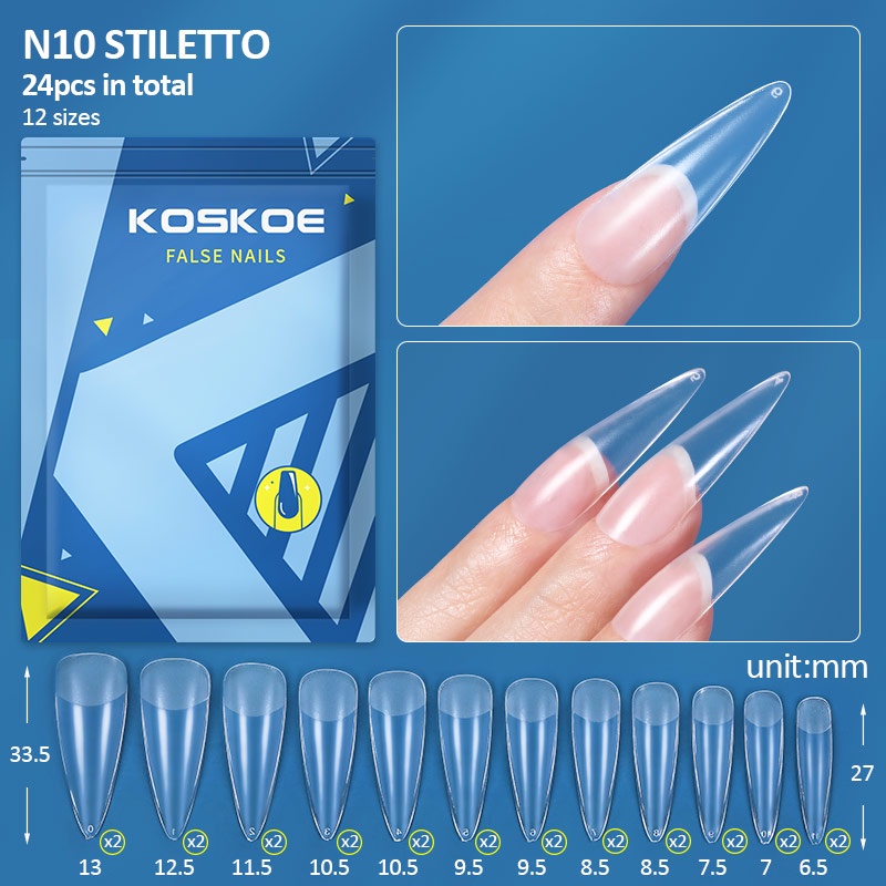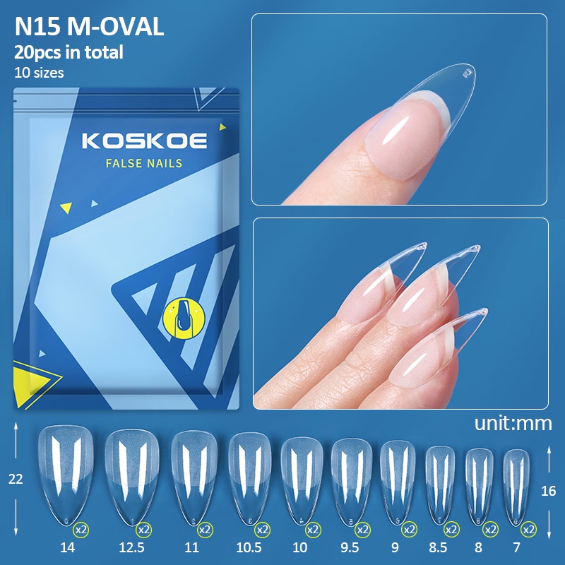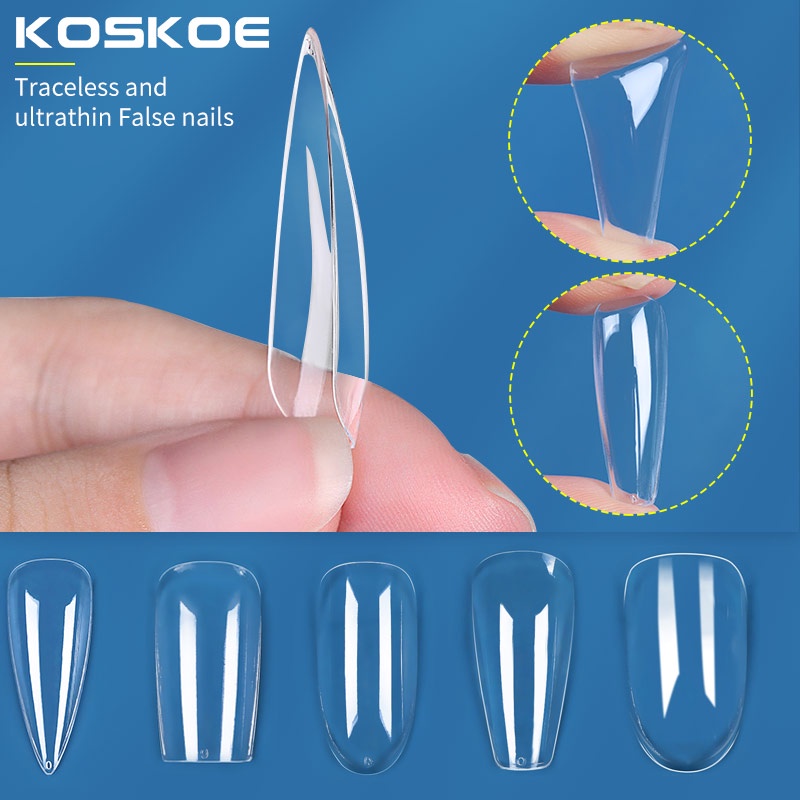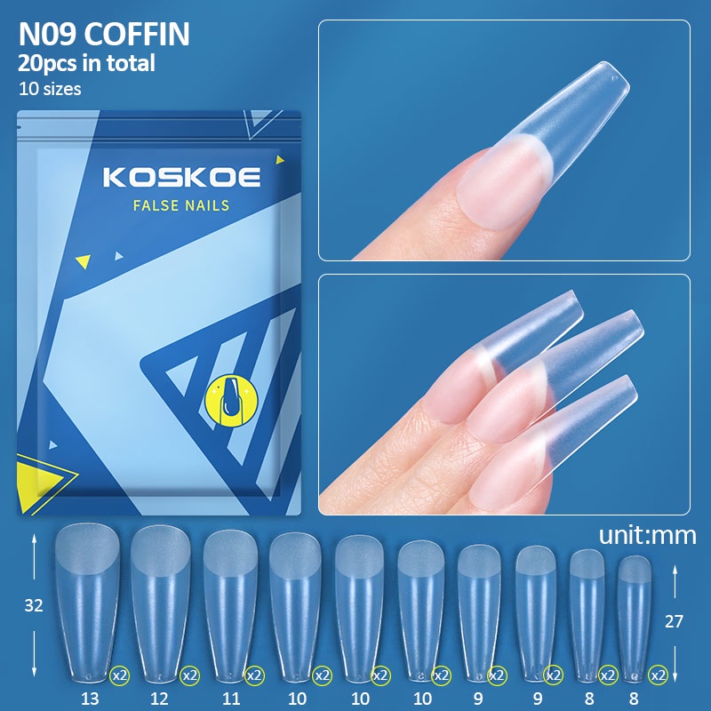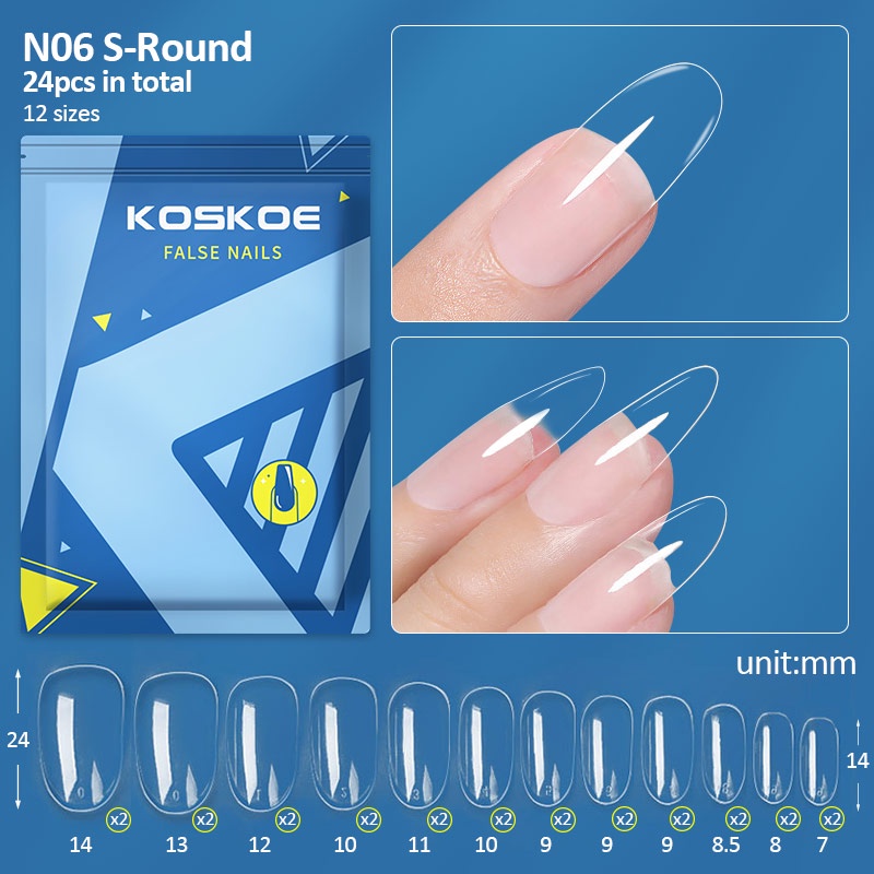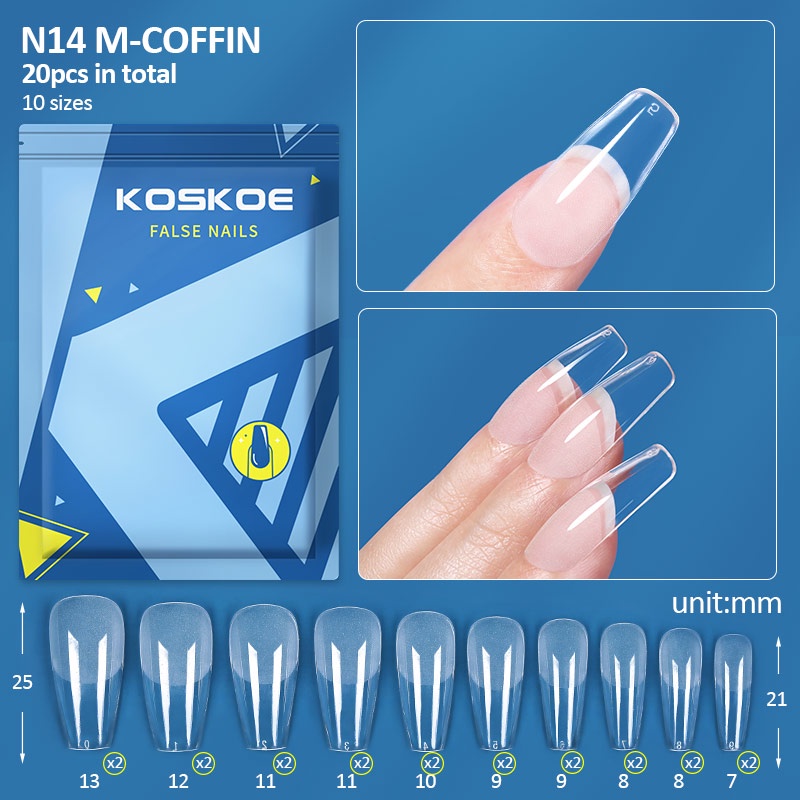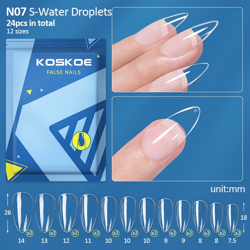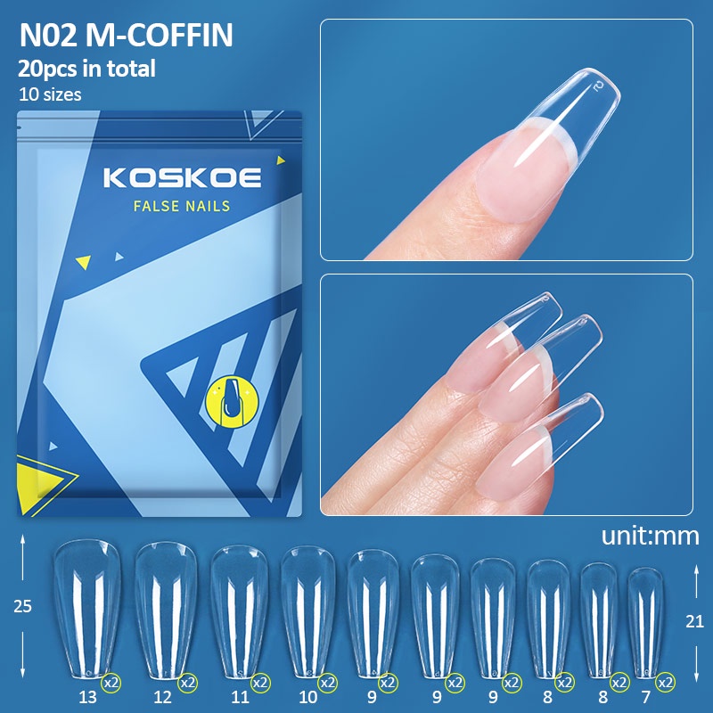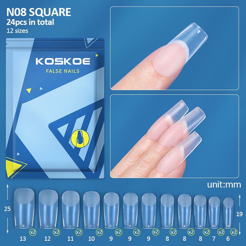 Born Pretty Fake Nails Full Coverage Almond Square Coffin Transparent False Tips 24 Pcs/Bag