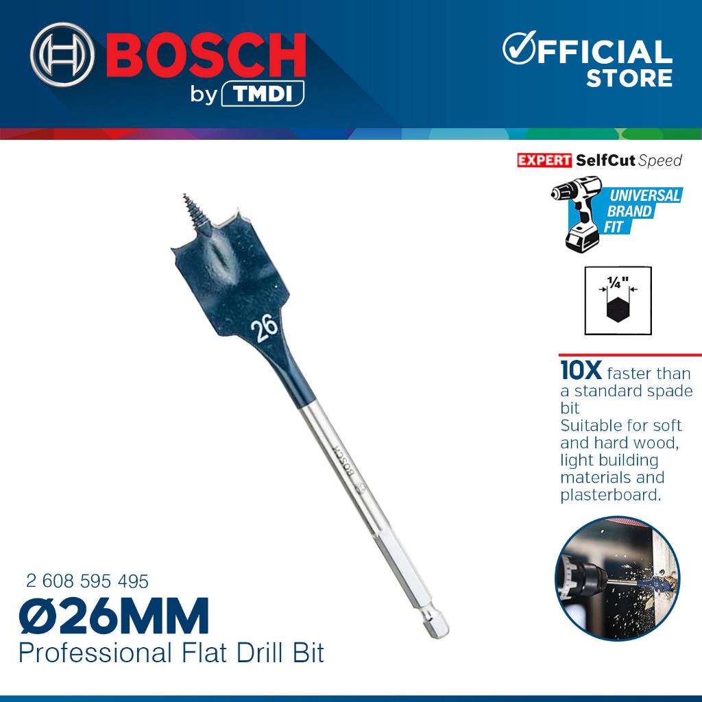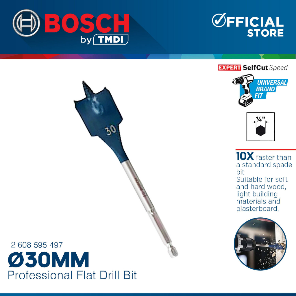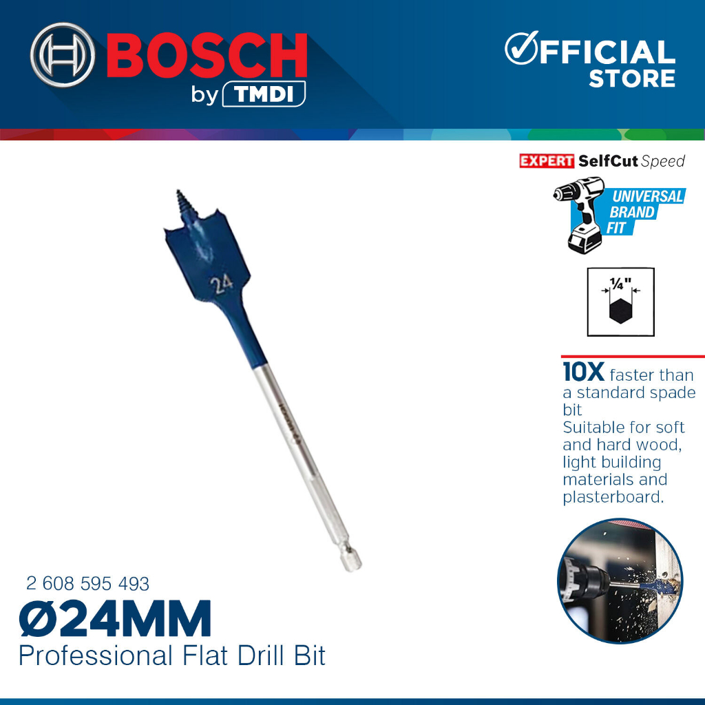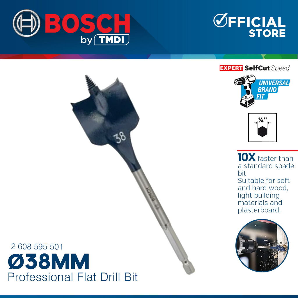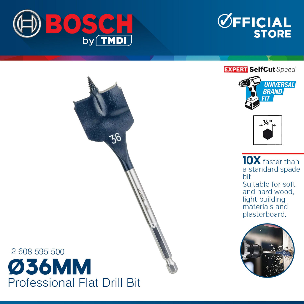 Bosch 152MM Self Cut Speed Flat Wood Spade Drill Bit 1/4" Hex Shank Drilling 24MM - 40MM BAX
