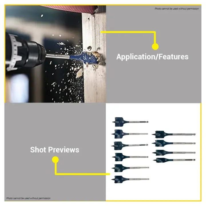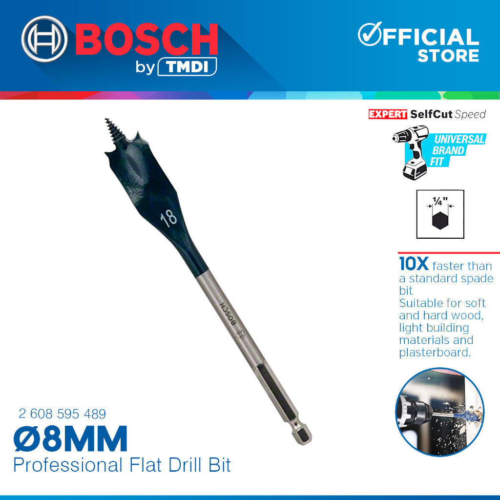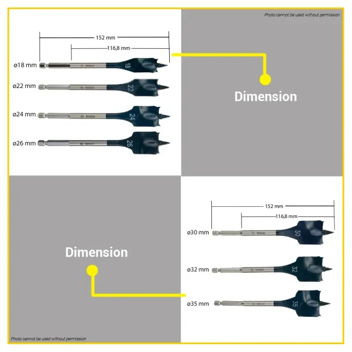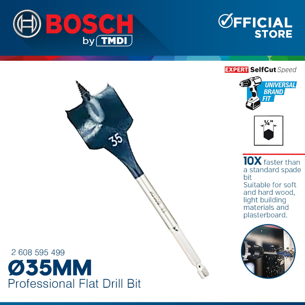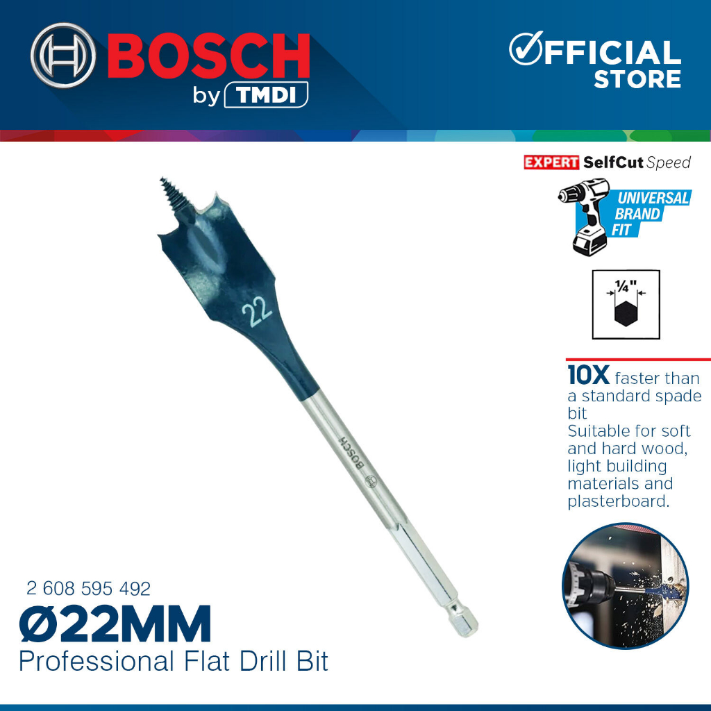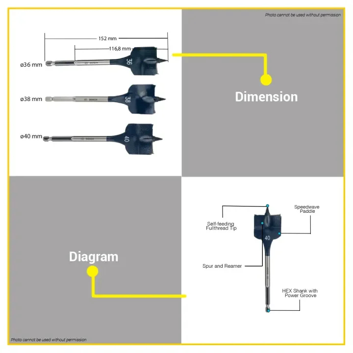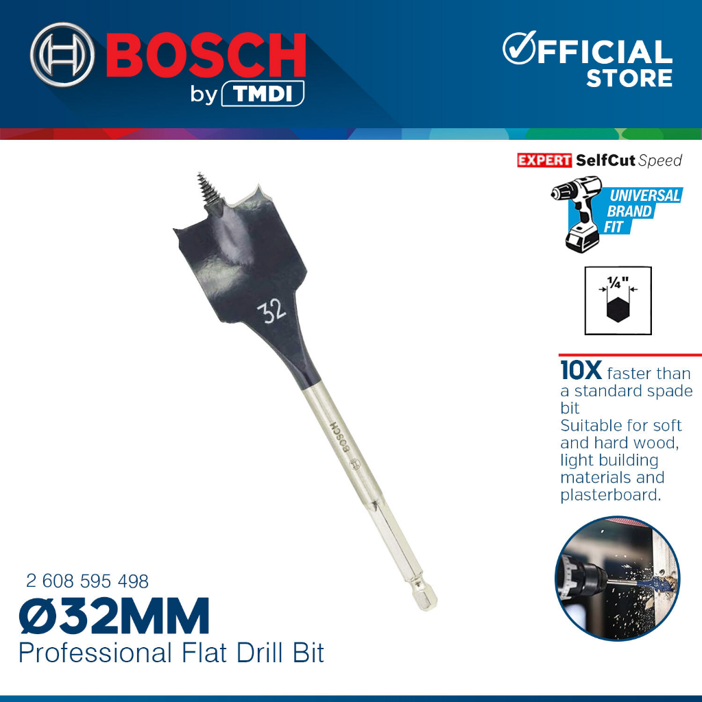 Bosch 152MM Self Cut Speed Flat Wood Spade Drill Bit 1/4" Hex Shank Drilling 24MM - 40MM BAX