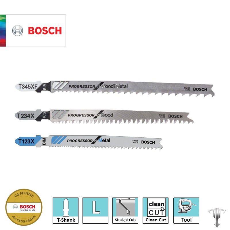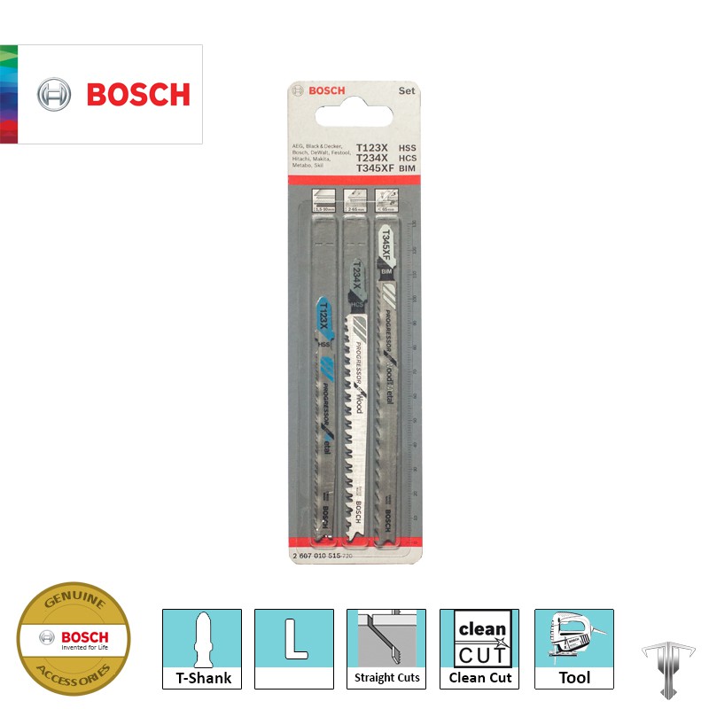 Bosch 2607010515 Assorted T-Shank Jigsaw Blades Progressor for Wood and Metal Set (3 pieces)