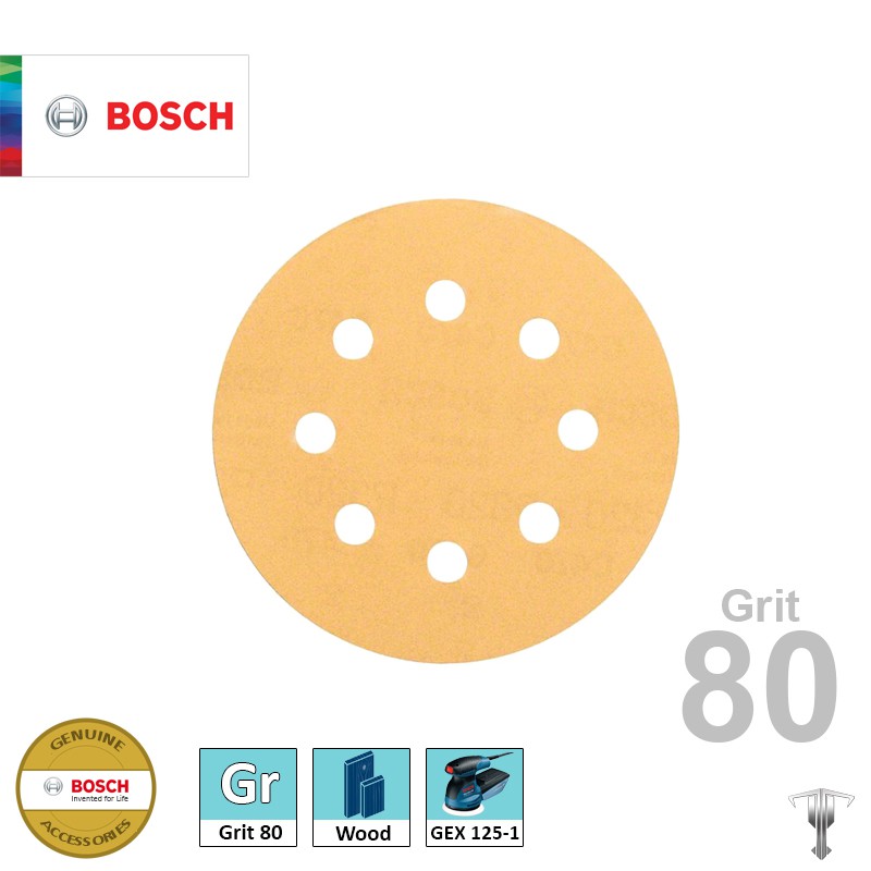 Bosch 2608608T65 Hook & Loop Sanding Disc Grit 80 (10 pieces)