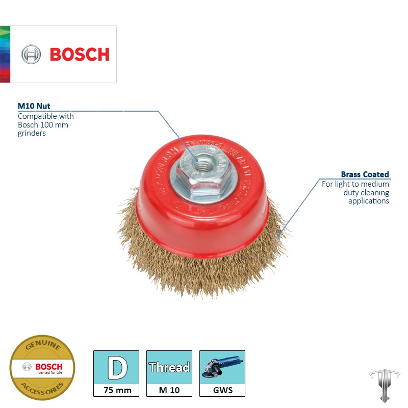 Bosch 2608622062 Wire Cup Brush Clean for Metal 75 mm M10 Thread