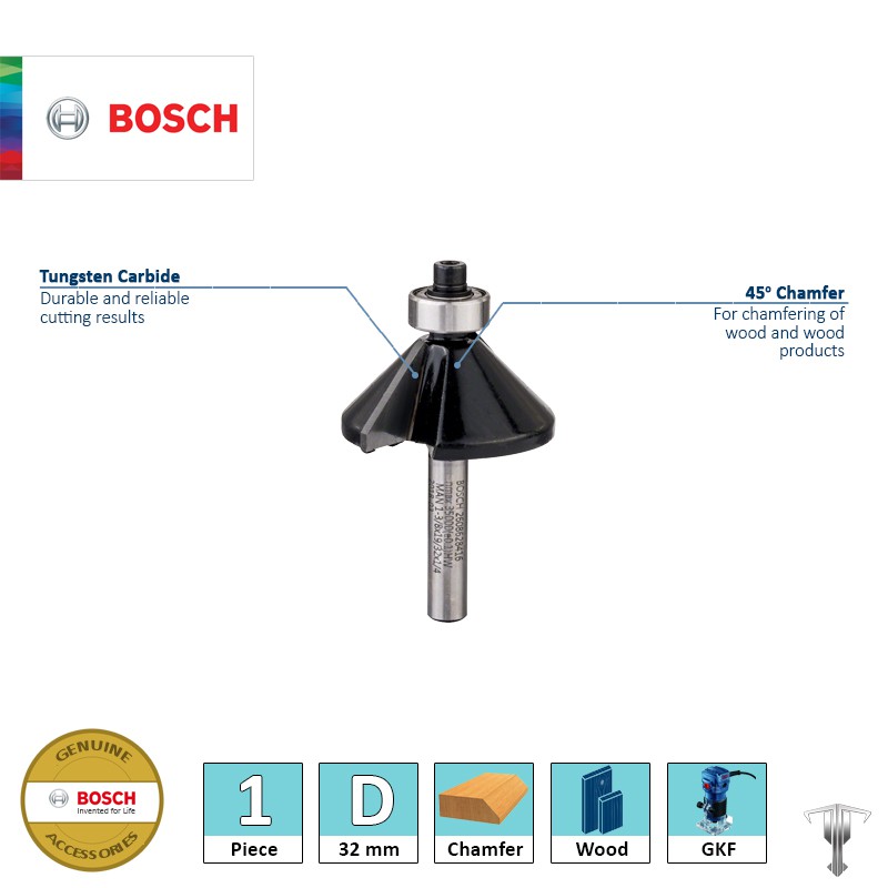 Bosch 2608628416 32 mm Chamfer Bit with Ball Bearing 1/4" Shank