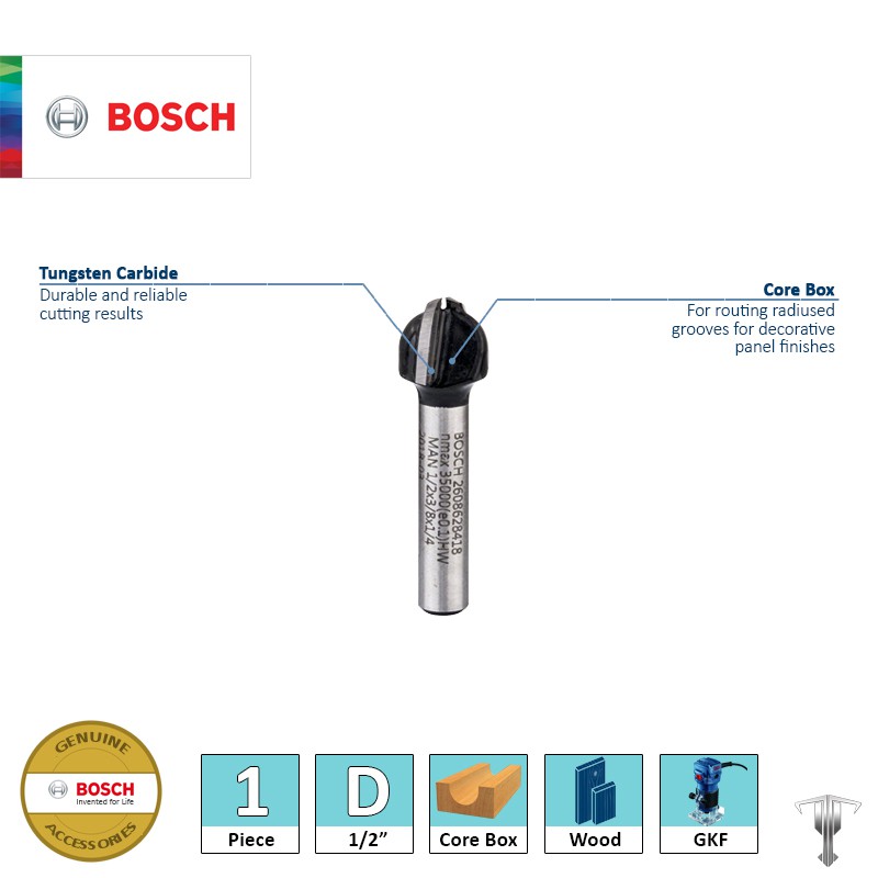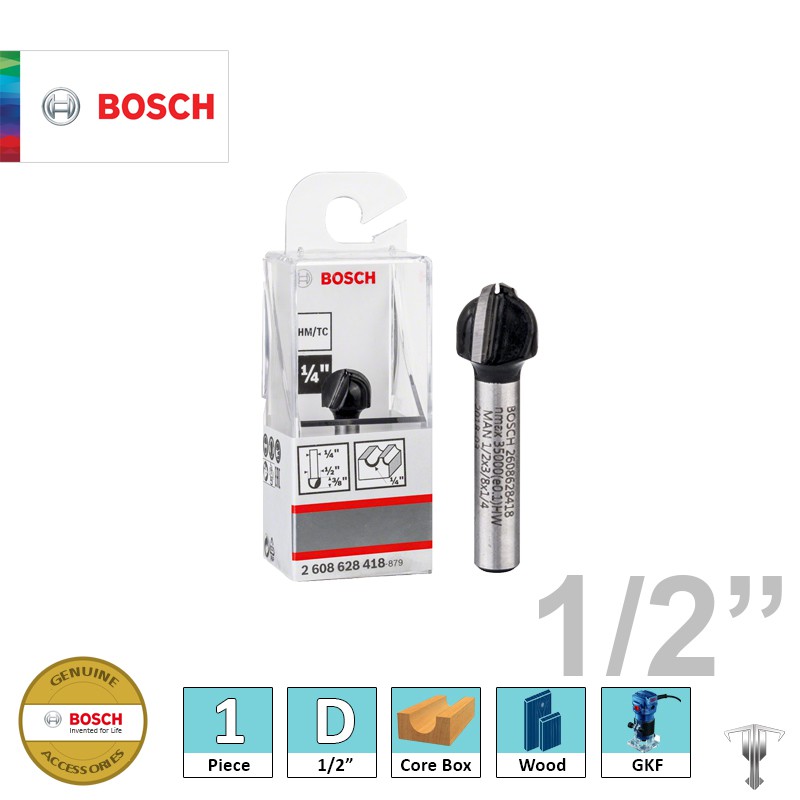 Bosch 2608628418 1/2" Core Box 2 Flute Bit 1/4" Shank