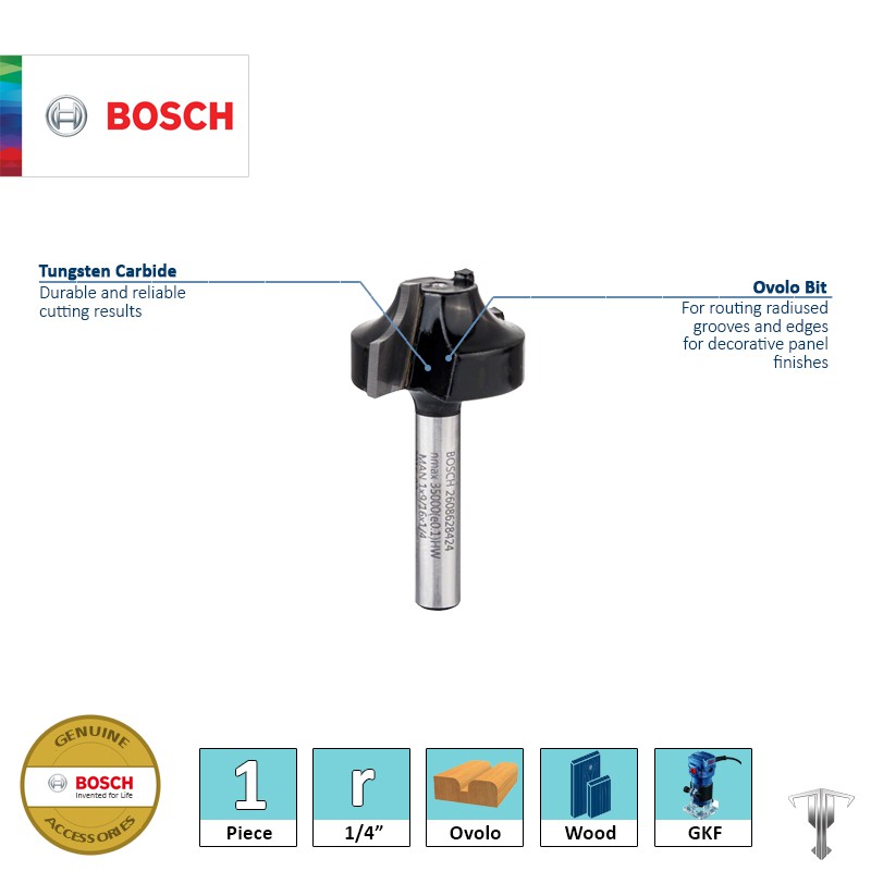 Bosch 2608628424 1/4" Ovolo Bit 1/4" Shank