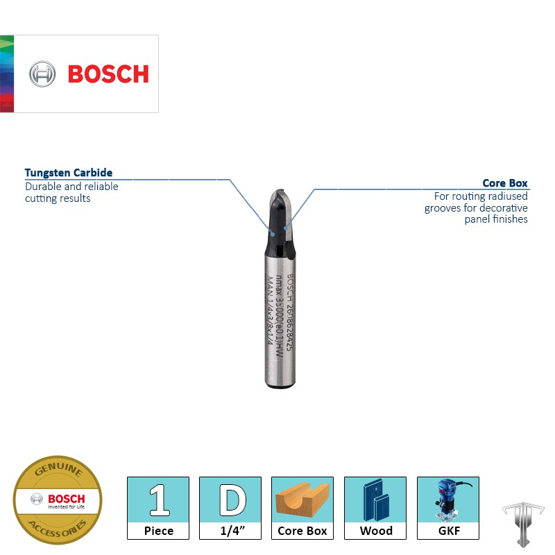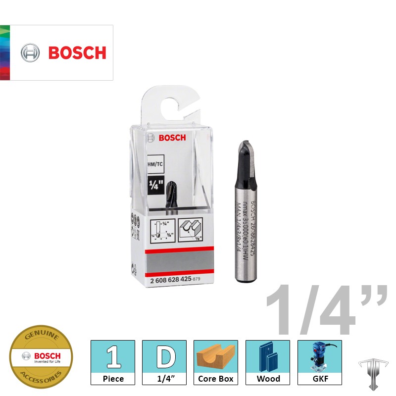 Bosch 2608628425 1/4" Core Box 2 Flute Bit 1/4" Shank