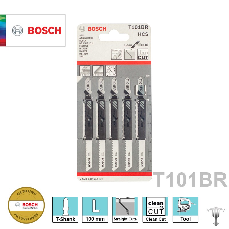 Bosch 2608630014 T101 BR T-Shank Jigsaw Blade for Clean Straight Cuts for Wood (5 pieces)