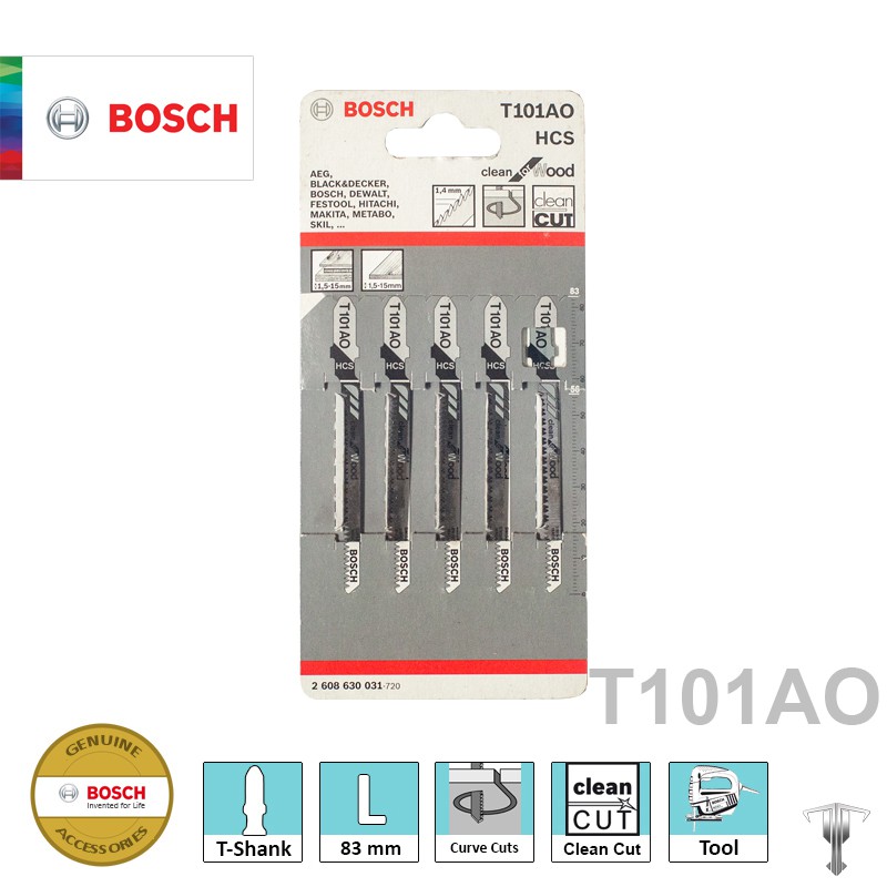 Bosch 2608630031 T101 AO T-Shank Jigsaw Blade for Clean Curve Cuts for Wood (5 pieces)