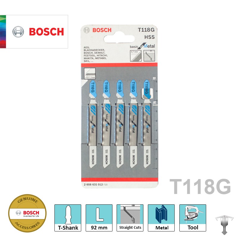 Bosch 2608631012 T118 G T-Shank Jigsaw Blade for Straight Cuts Basic for Metal (5 pieces)