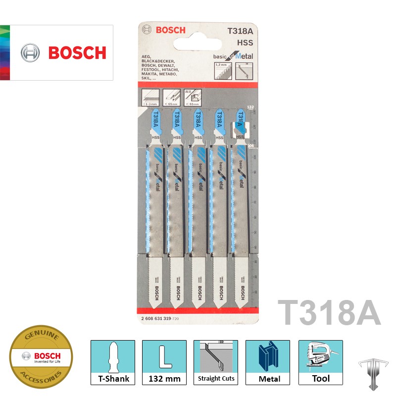 Bosch 2608631319 T318 A T-Shank Jigsaw Blade for Straight Cuts Basic for Metal (5 pieces)