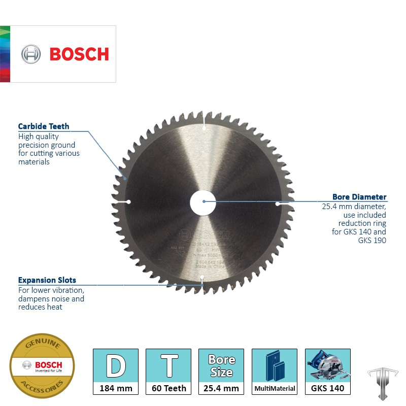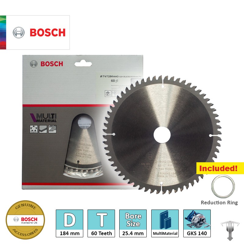 Bosch 2608642194 Saw Blade 184 mm MultiMaterial 60 Teeth for Bosch GKS 140
