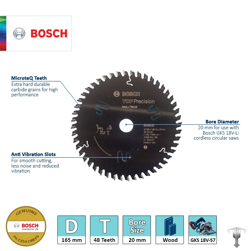 Bosch 2608642384 Saw Blade 165 mm Top Precision Best for Wood 48 Teeth for Bosch GKS 18V-Li